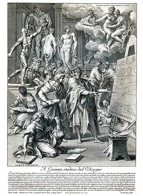 Bức tranh "The Academy of Drawing" được tạo ra khoảng từ năm 1704 đến 1709 bởi họa sĩ Carlo Maratti. Đây là một bức tranh biểu tượng về việc giảng dạy học thuật được dành riêng cho "các sinh viên trẻ về vẽ".