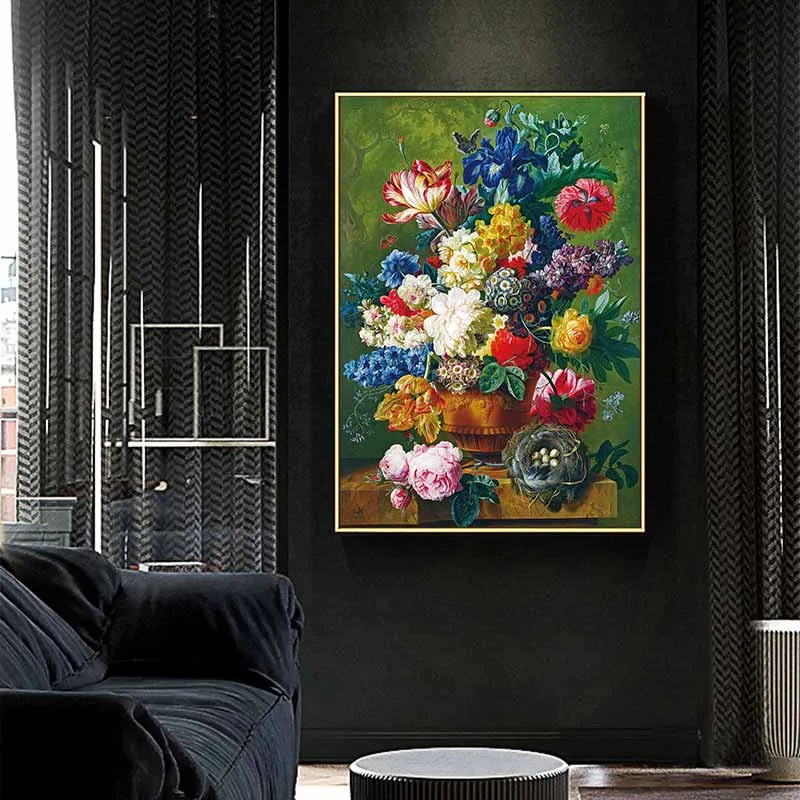 Bản in tranh bình hoa cổ điển của họa sĩ Paulus Theodorus Van Brussel vẽ năm 1792