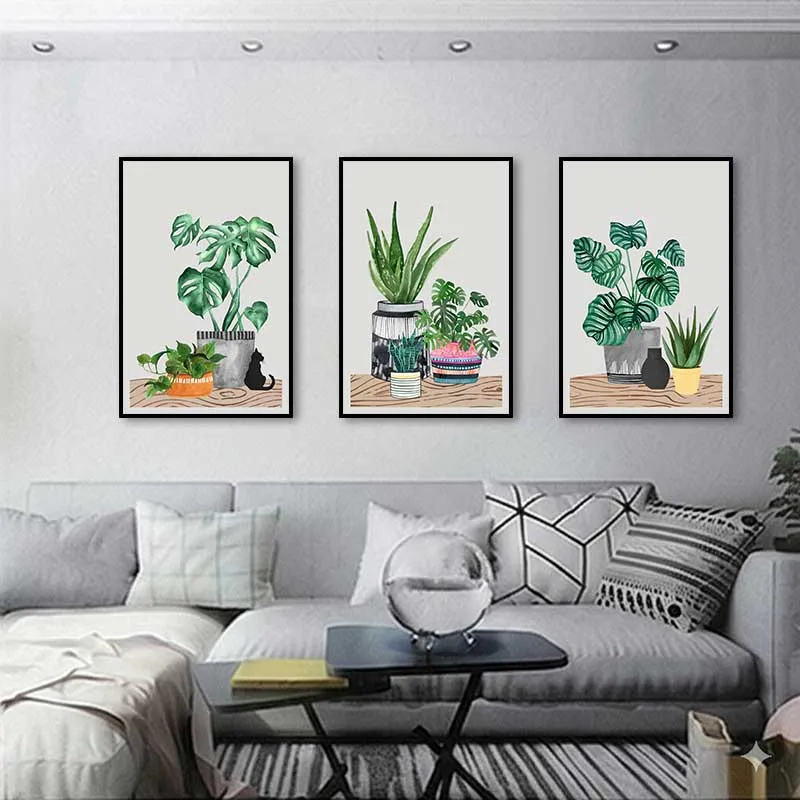 Bộ tranh này mang phong cách nghệ thuật minimalism, thể hiện vẻ đẹp tự nhiên của các loại cây cảnh trong chậu. Mỗi bức tranh đều có thiết kế đơn giản nhưng tinh tế, sử dụng màu sắc tươi sáng và hài hòa, tạo cảm giác gần gũi với thiên nhiên. Bộ tranh phù hợp trang trí cho không gian nội thất như phòng khách, phòng ngủ hoặc văn phòng, giúp không gian trở nên thư giãn và tràn đầy sức sống.