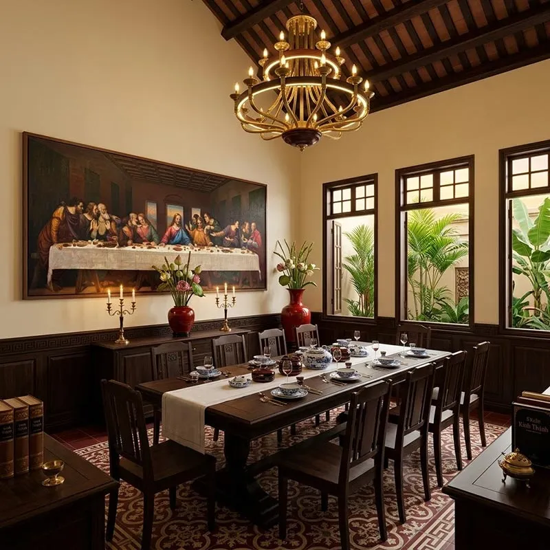 Không gian mang phong cách Truyền thống / Tôn giáo: Phù hợp với những ngôi nhà chú trọng đến các giá trị truyền thống, góc cầu nguyện hoặc không gian sống tĩnh lặng, trầm mặc.