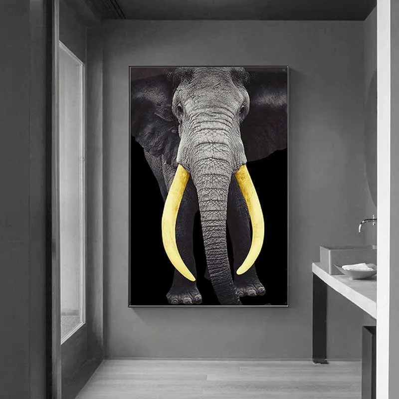 Bức tranh voi đen huyền bí với sừng vàng nổi bật, mang đến vẻ đẹp sang trọng và mạnh mẽ, lý tưởng để trang trí không gian hiện đại.