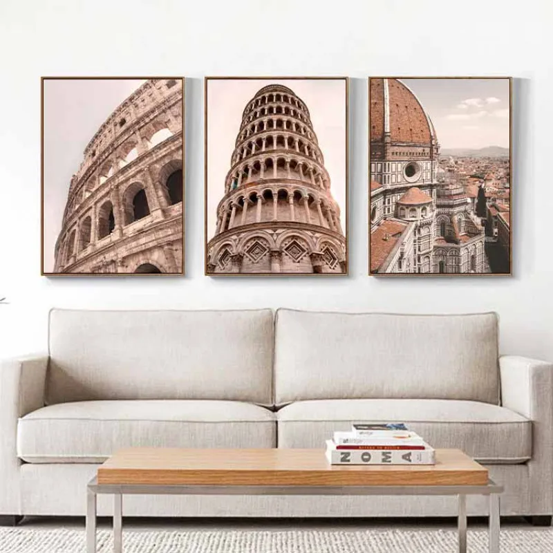 Với gam màu vintage trầm ấm, bộ tranh "Kỳ Quan Vĩnh Cửu" toát lên vẻ đẹp cổ điển, sang trọng, mang đến không gian sống một chút hoài niệm về quá khứ huy hoàng của nước Ý.