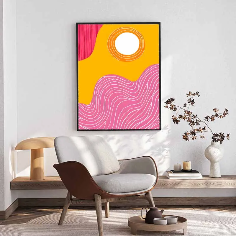 - Không gian làm việc/Studio: Sắc cam năng lượng và hồng vui tươi có thể kích thích sự sáng tạo và mang lại tinh thần lạc quan. Treo bức tranh trong văn phòng làm việc tại nhà hoặc studio nghệ thuật để tạo nguồn cảm hứng.