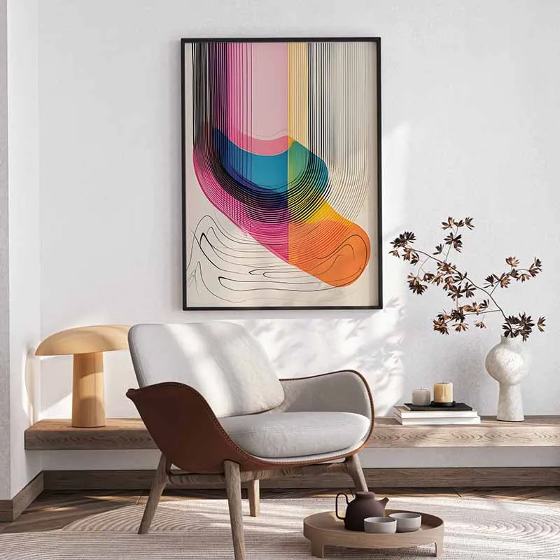 - Không gian làm việc/Studio: Các đường nét uyển chuyển và màu sắc tươi sáng có thể kích thích sự sáng tạo và mang lại tinh thần lạc quan. Treo bức tranh trong văn phòng làm việc tại nhà hoặc studio nghệ thuật để tạo nguồn cảm hứng và không gian làm việc năng động.