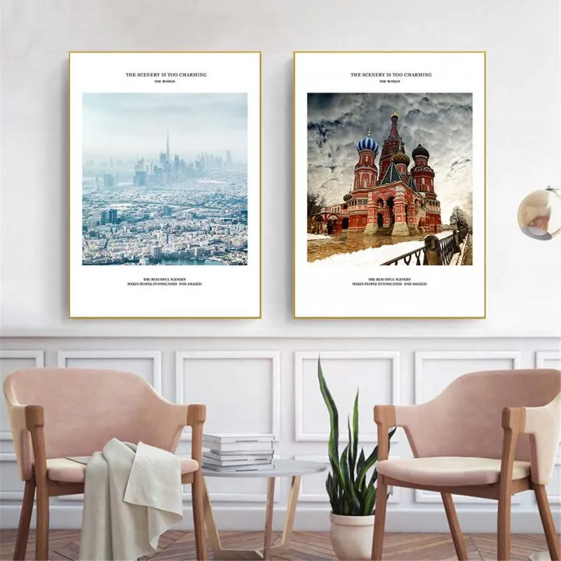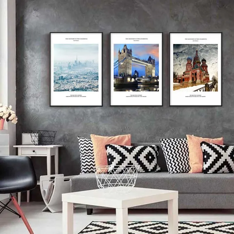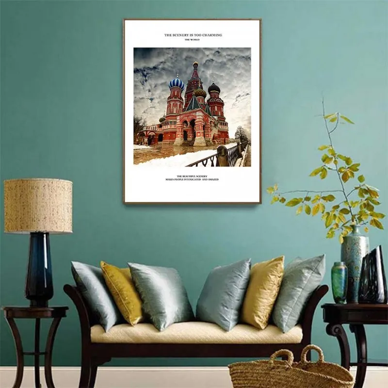 Tranh in canvas phong cảnh mùa đông Nhà thờ chính tòa Thánh Vasily – Moskva, Thành phố Dubai và cầu tháp London.