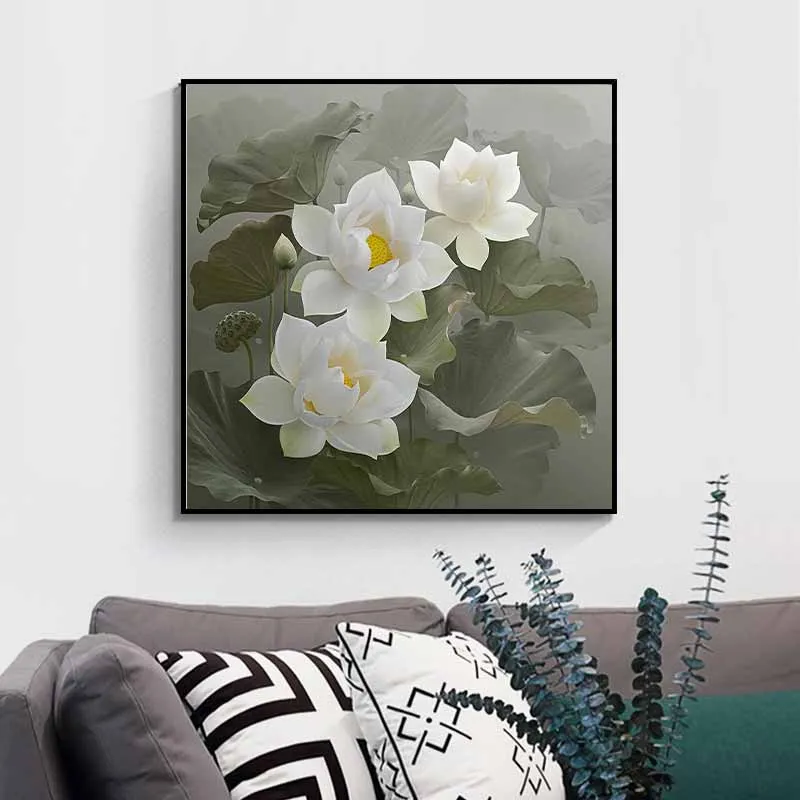 Tranh 3 bông hoa sen trắng khổ vuông