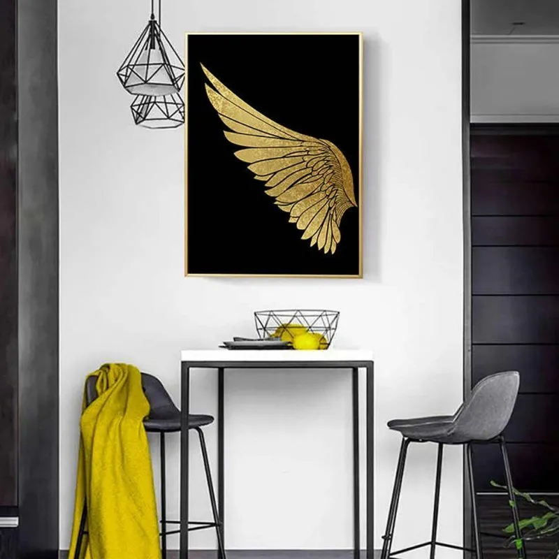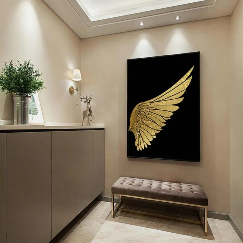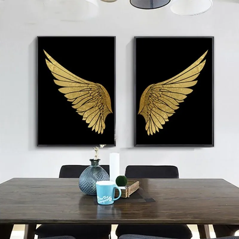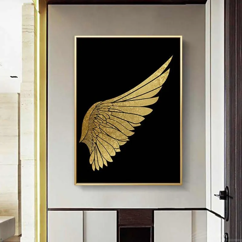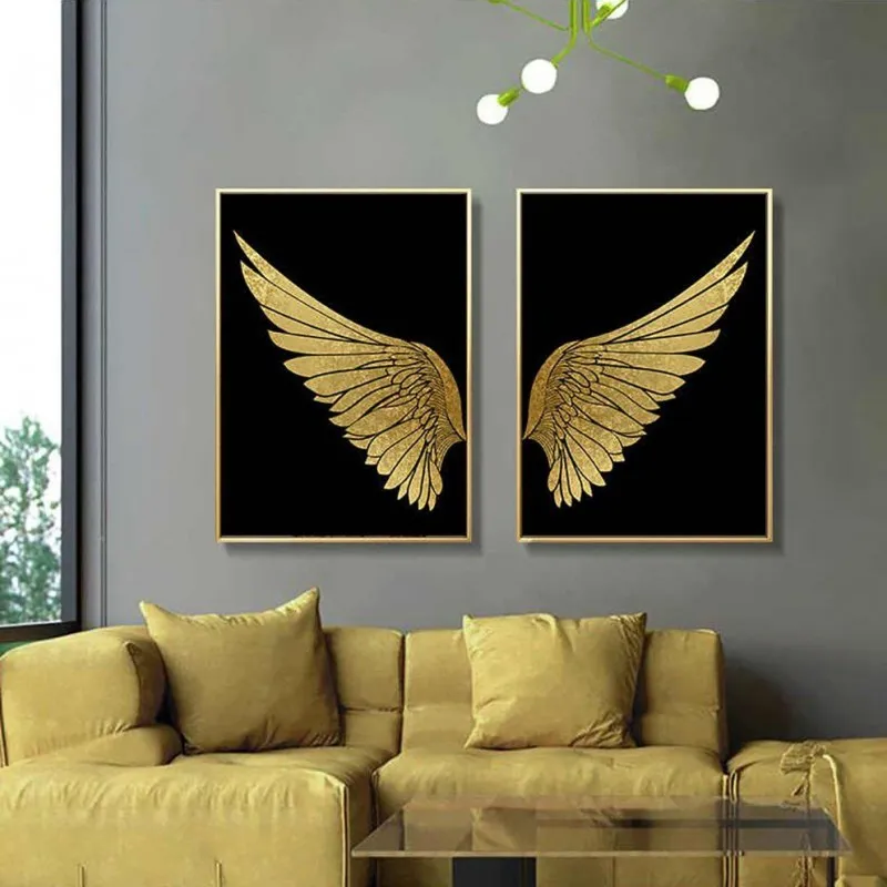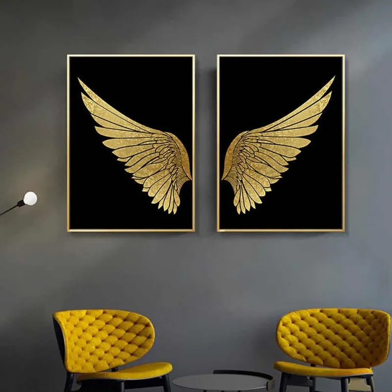 Tranh đôi cánh chim vàng trên nền đen sang trọng, tranh đôi cánh chim mang ý nghĩa bay cao, bay xa và sự tự do phù hợp với những doanh nghiệp, doanh nhân mong muốn ngày càng phát triển.