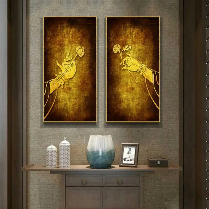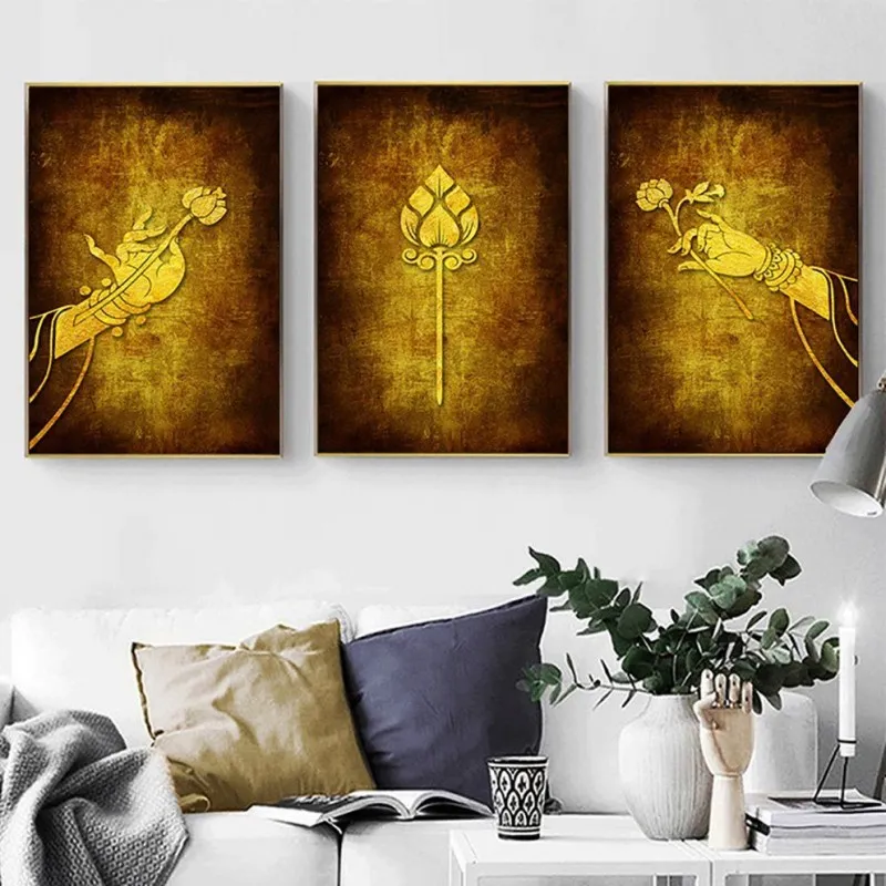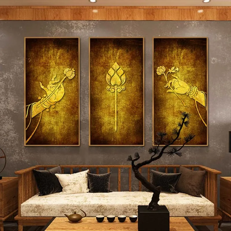 Tranh bàn tay đức phật và hoa sen