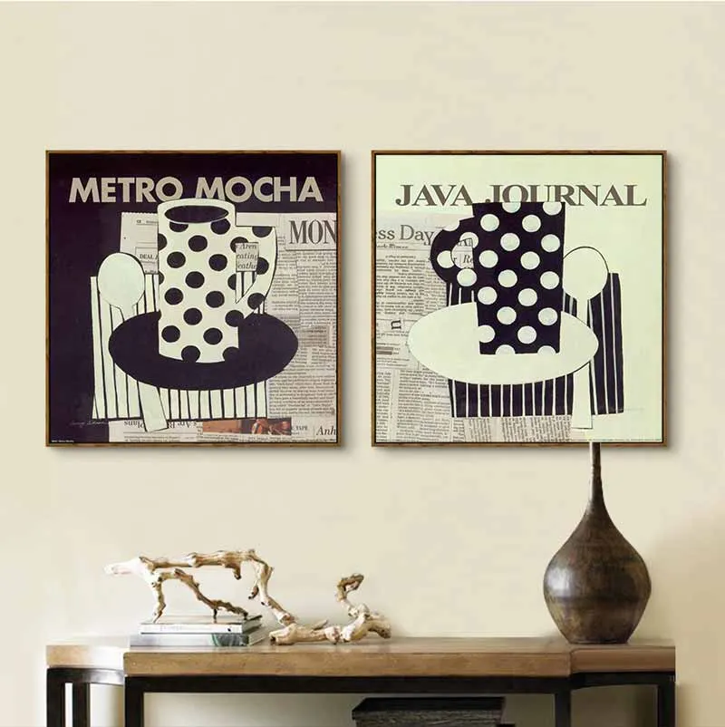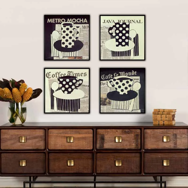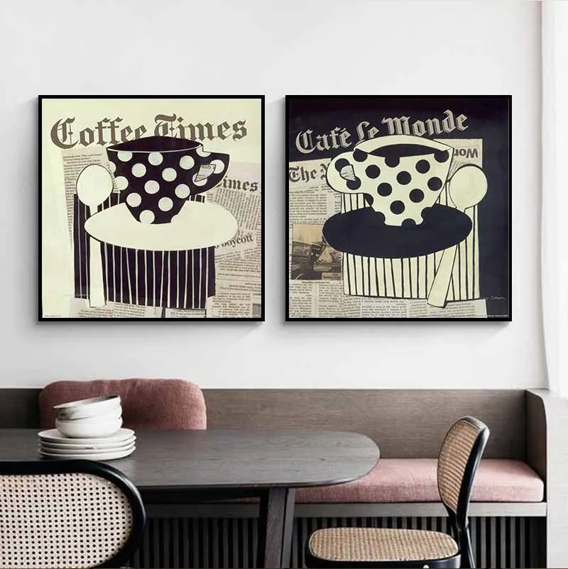 Tranh báo cắt dán treo quán cà phê, tranh ly coffee hoa văn chấm bi