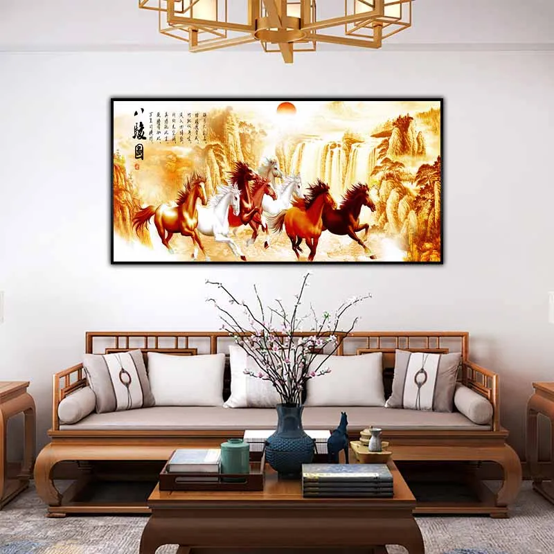 - Tranh được in trên chất liệu vải Canvas, mực dầu 6 màu nhập khẩu cho màu sắc trung thực và cực kỳ bền màu, không cần mặt kính bảo vệ, có thể vệ sinh bằng khăn ướt.