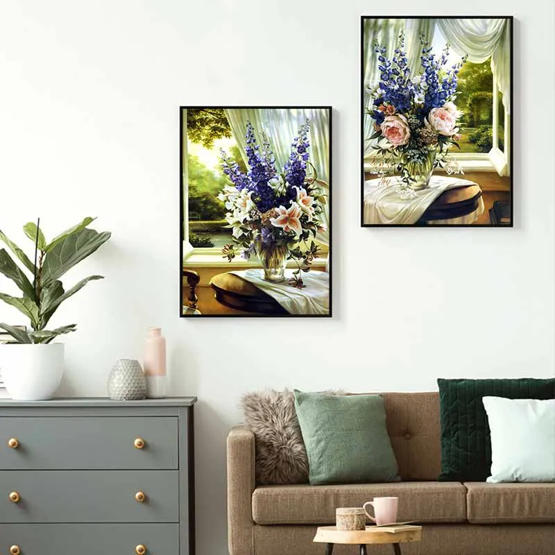 Làm bừng sáng không gian của bạn với hai bức tranh canvas in tuyệt đẹp này, mỗi bức có một bó hoa rực rỡ bên cạnh một cửa sổ đầy nắng. Với màu sắc sống động và chi tiết phức tạp, những bản in này chắc chắn sẽ làm bừng sáng bất kỳ căn phòng nào và mang đến một chút đẹp đẽ tự nhiên. Cho dù bạn đang muốn tạo ra một điểm nhấn bắt mắt hay chỉ cần thêm một chút sang trọng vào trang trí của mình, thì những bản in này là lựa chọn hoàn hảo.