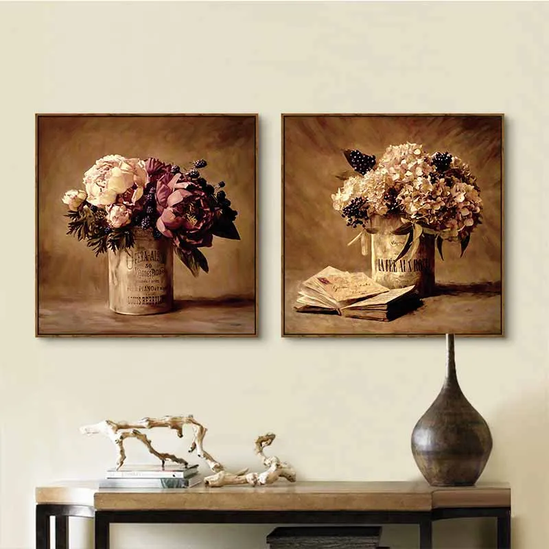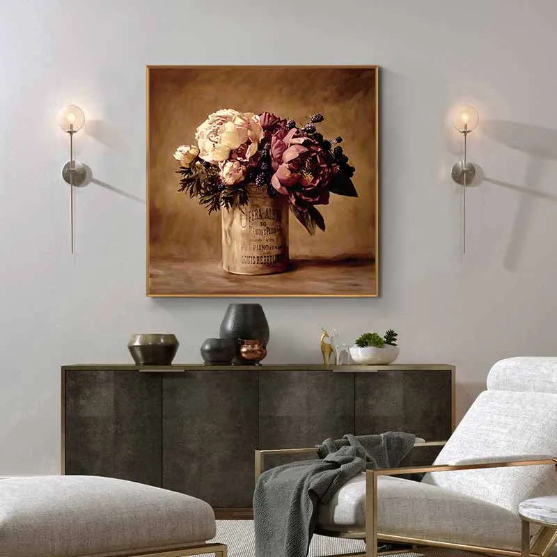 Tranh bình hoa Mẫu Đơn và hoa Cẩm Túc Cầu