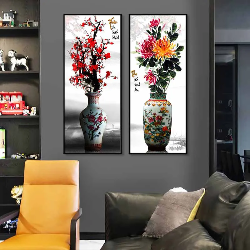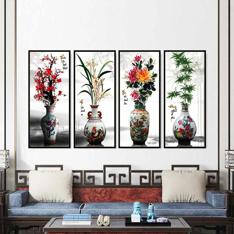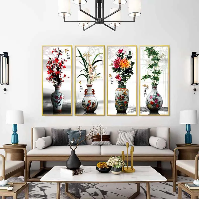 Tranh bình Tứ quý Đào Lan Cúc Trúc phong thủy