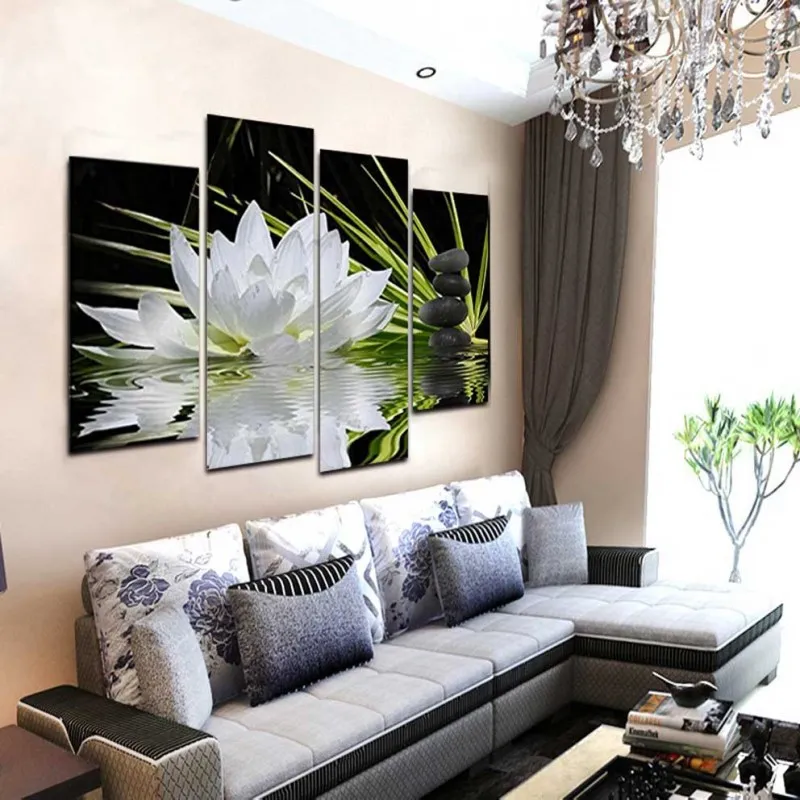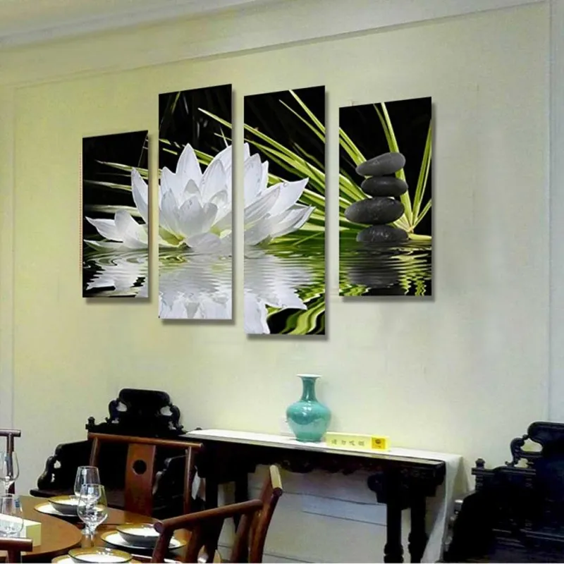 Tranh bộ ghép 4 tấm hoa sen trắng