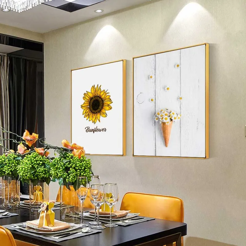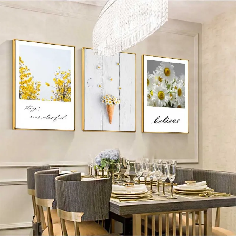 Tranh in canvas Scandinavian bộ hoa cúc trắng, hoa hướng dương, hoa cúc vàng kết hợp chữ stay wonderful, sunflower, believe. Mẫu tranh được thế kế màu chủ đạo là trắng, tuy vẫn có chút vàng nắng giúp bộ tranh có được sự ấm áp mà không quá lạnh lẽo hay nóng bức. Tranh thích hợp treo trong nhiều không gian khác nhau.