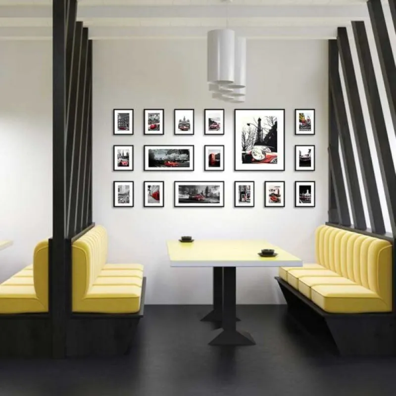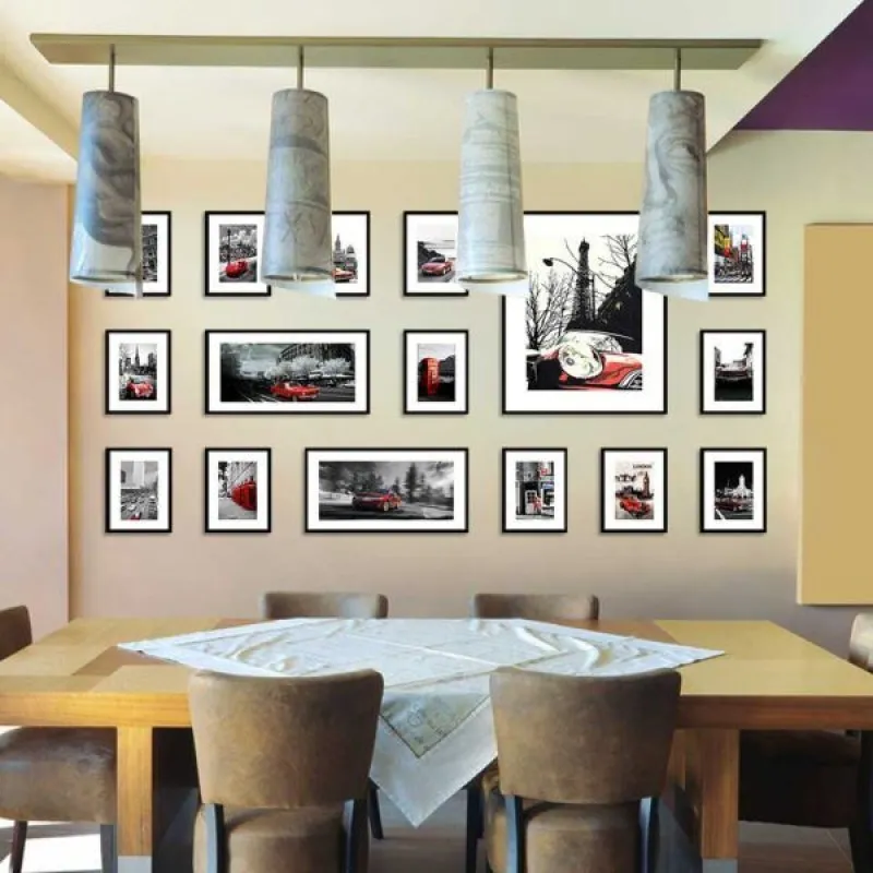 Tranh in canvas phong cảnh những tòa tháp và tòa nhà, ô tô màu đỏ với phong cách từ cổ điển đến hiện đại, tháp đồng hồ Big Ben, người đàn ông mặc áo đỏ, trụ điện thoại công cộng ở Luân Đôn, nước Anh, những tấm biển quảng cáo led được đặt trên những tòa nhà cao chót vót, lòng đường tấp nập những chiếc xe. Thiết kế màu sắc đơn giản làm nổi bật lên hình ảnh của những chiếc xe, và màn hình quảng cáo trên nền trắng đen hình ảnh của những tòa nhà cao chót vót, thích hợp treo ở phòng khách, phòng làm việc, quán cà phê, chân cầu thang.
