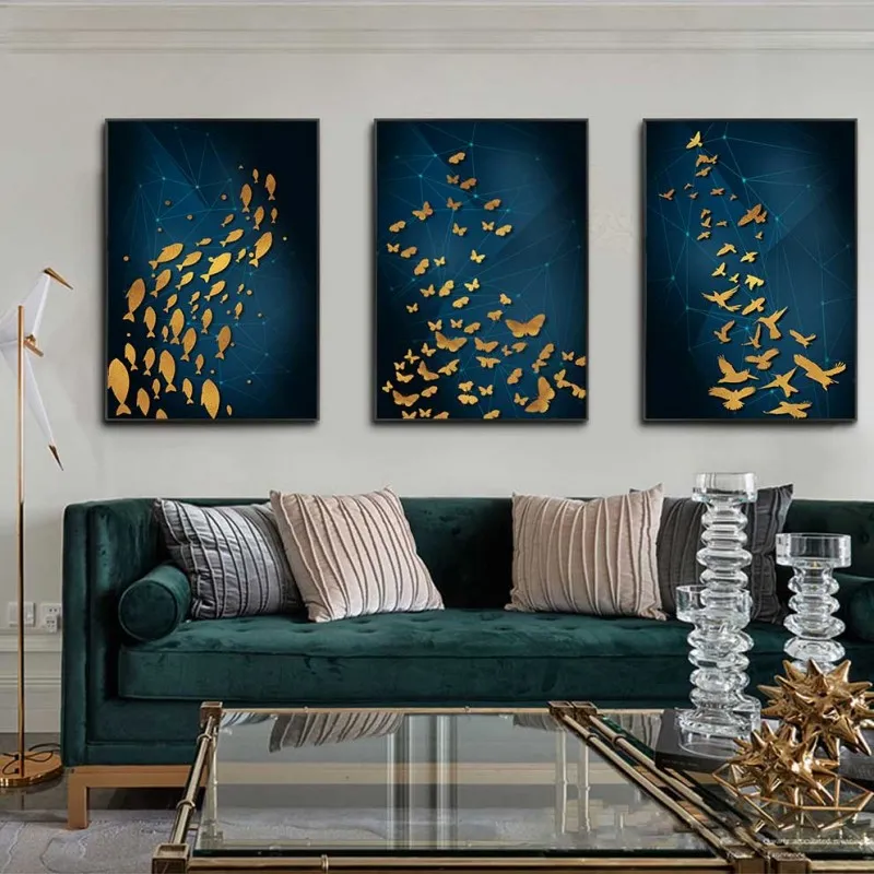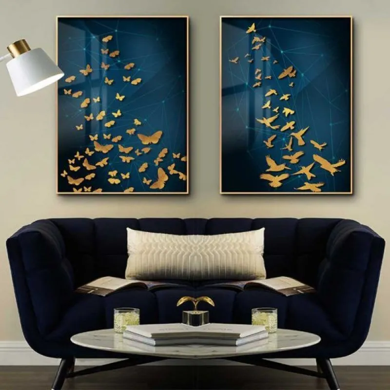 Tranh bộ trừu tượng đàn cá, đàn chim và đàn bướm. Tất cả đều bay hướng lên trên, tượng trưng cho sư vươn lên, sự thành đạt và sung túc.