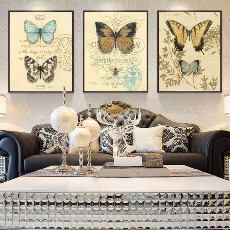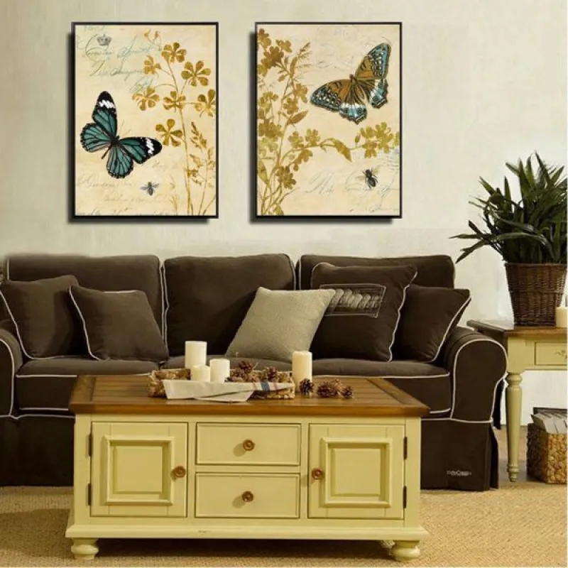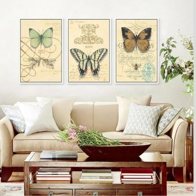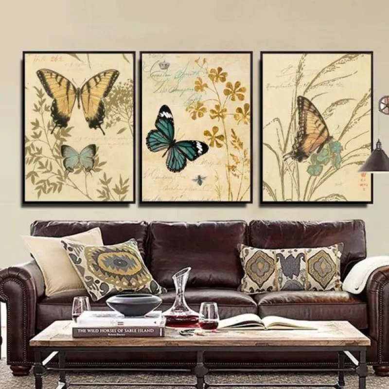 Tranh in canvas đàn bướm, với kiểu thiết kế tem có màu sắc cổ điển theo phong cách Vintage, màu nền và cây lá xung quanh nhạt hơn làm nổi bật chủ đề chính. Thích hợp treo ở phòng khách, phòng làm việc, phòng ngủ, đặc biệt là nhà hàng, quán cà phê có kiểu thiết kế cổ xưa, chân cầu thang, bàn học, bàn làm việc…