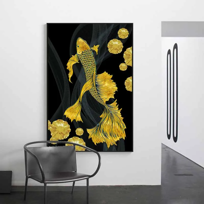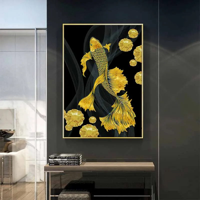 Tranh cá chép hóa rồng và hoa sen vàng