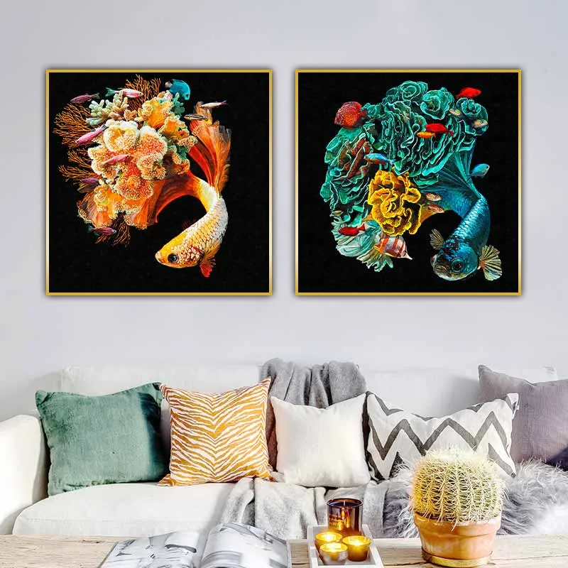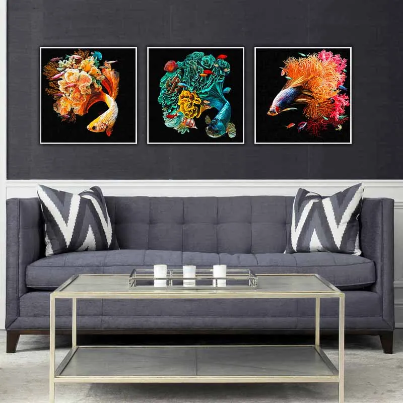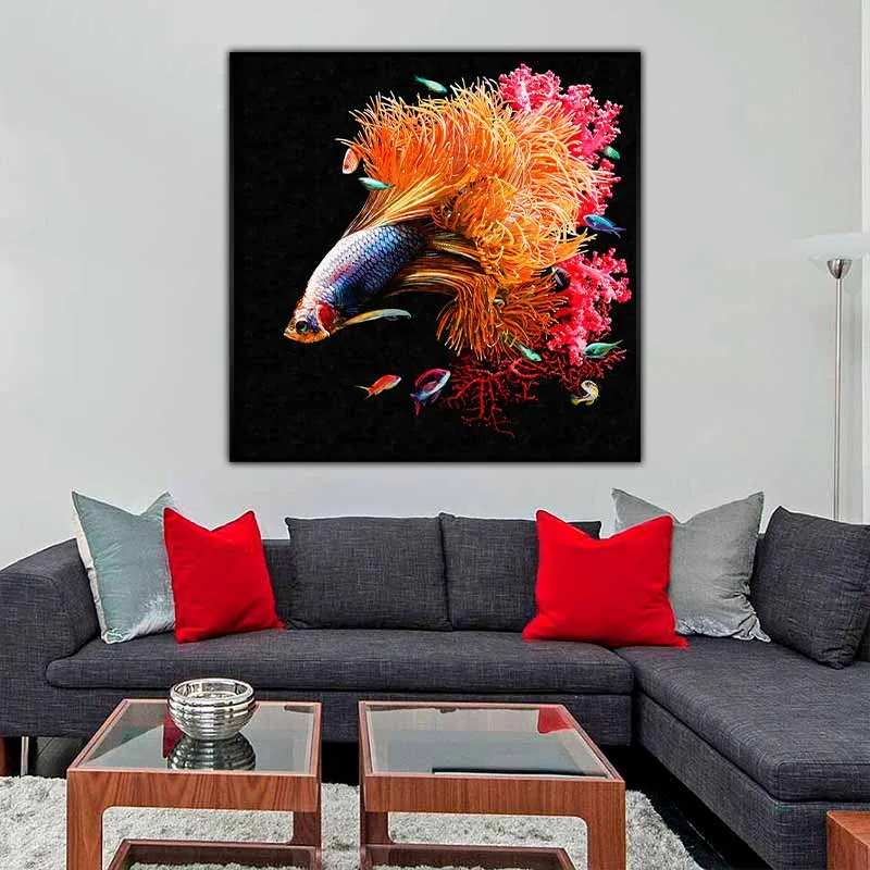 Tranh cá phướng, cá xiêm, cá đá, cá chọi, cá beta trừu tượng có đuôi là những rạn san hô