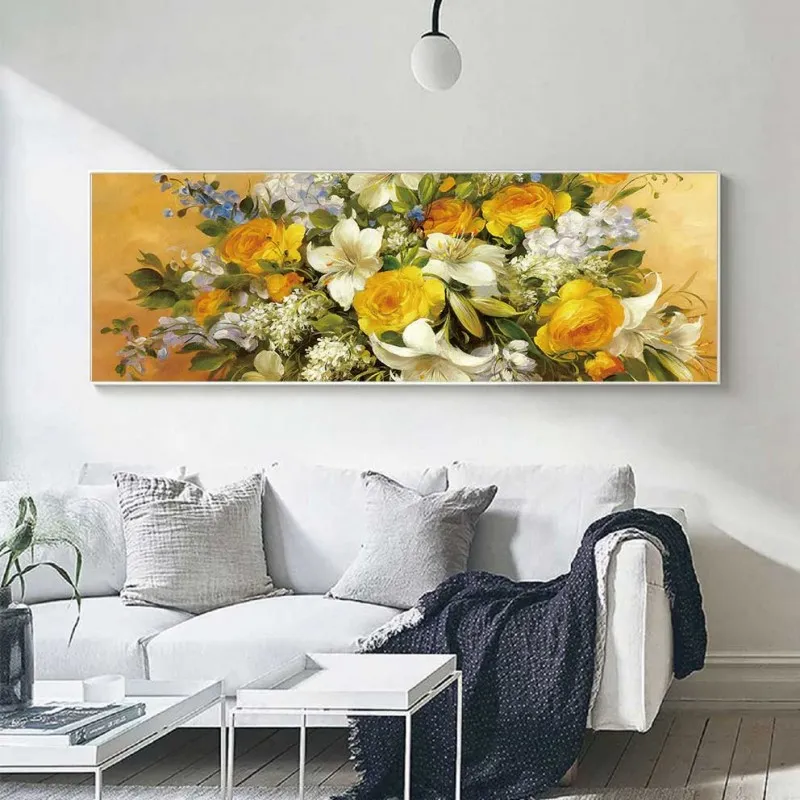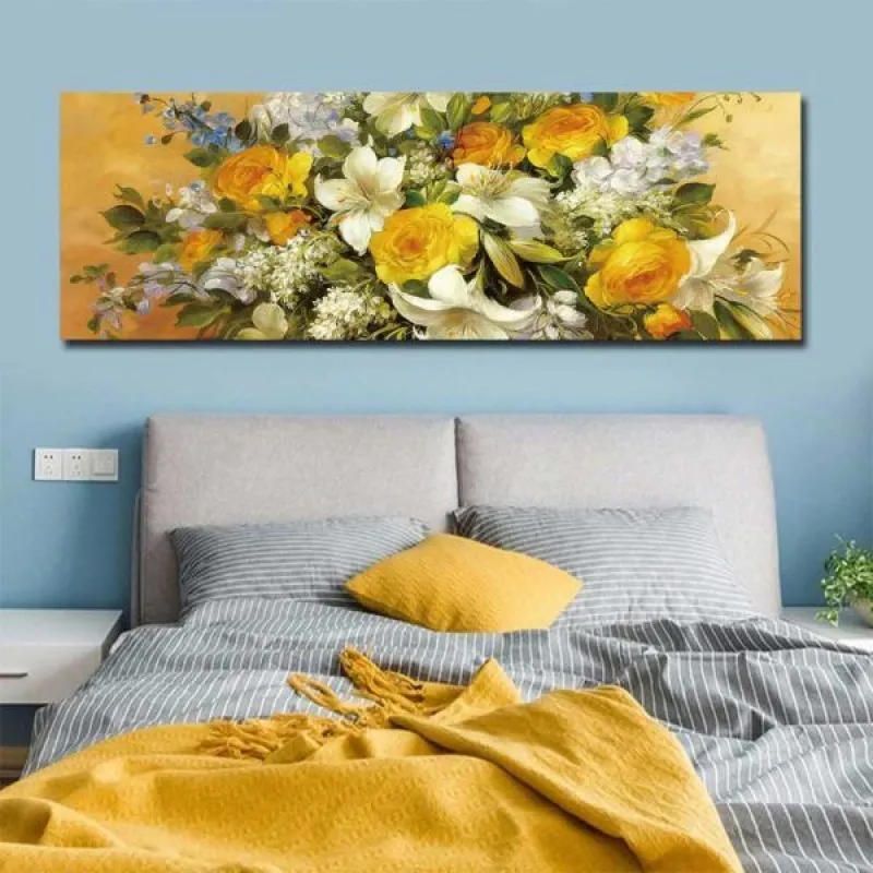 Tranh in canvas các loại hoa hồng vàng, hoa ly. Với màu chủ đạo vàng tươi sáng sẽ giúp cho không gian trở nên năng động làm điểm nhấn sinh động cho căn phòng. Thích hợp treo ở phòng khách, phòng ngủ…