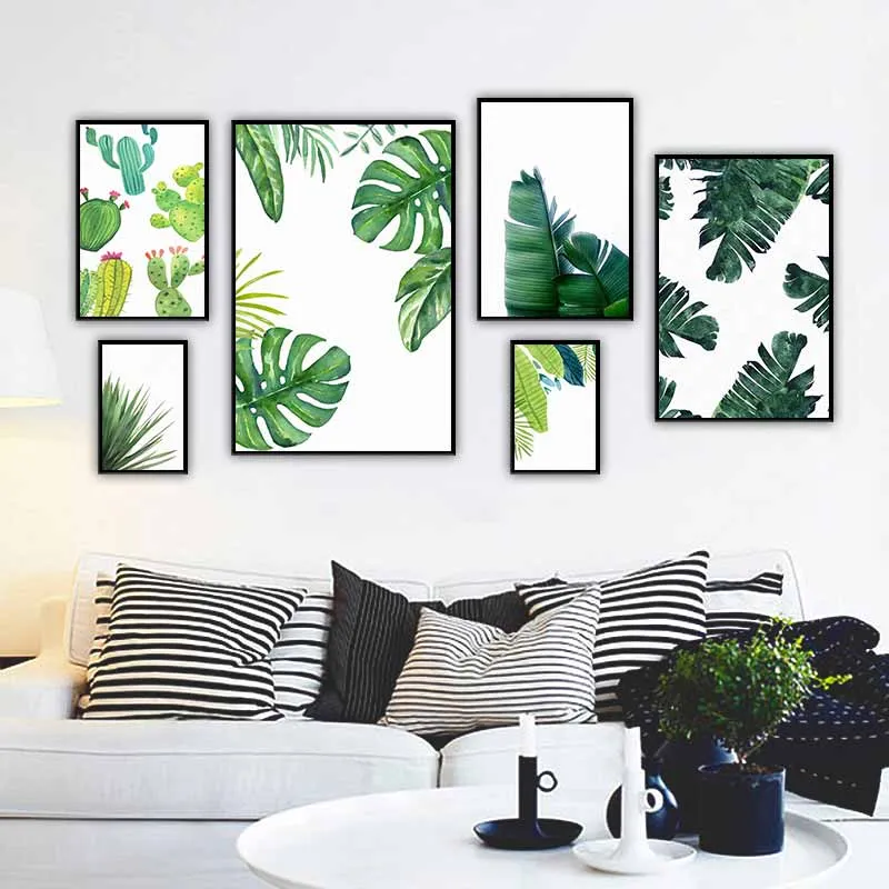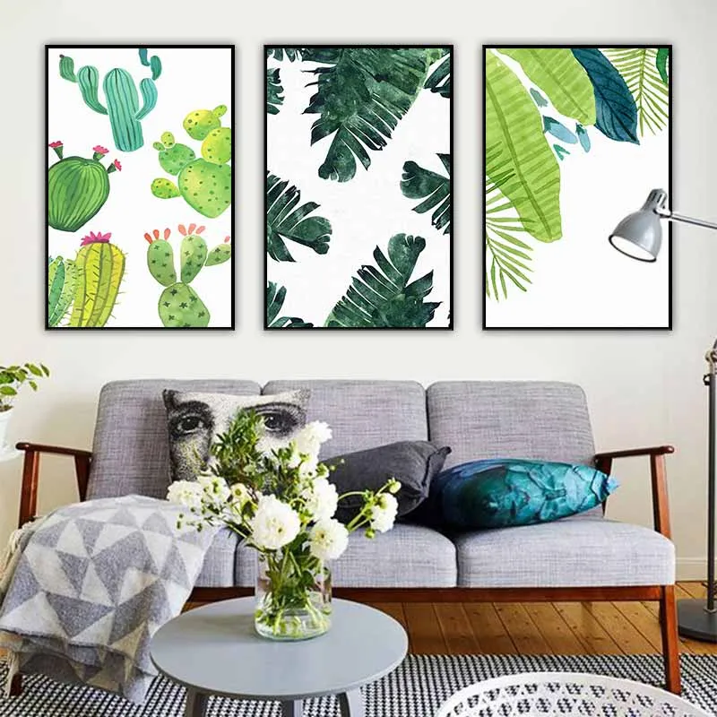 Tranh các loại lá cây nhiệt đới và cây xương rồng