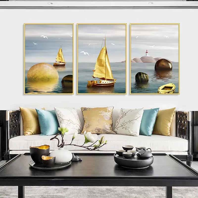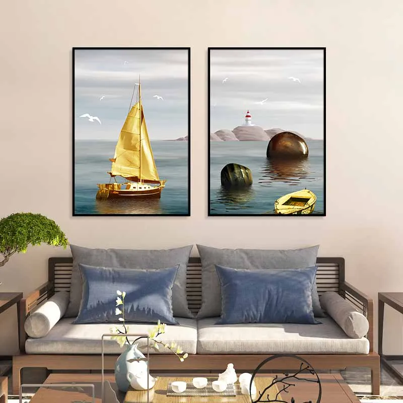 Tranh cánh buồm vàng và những tảng đá phong thủy