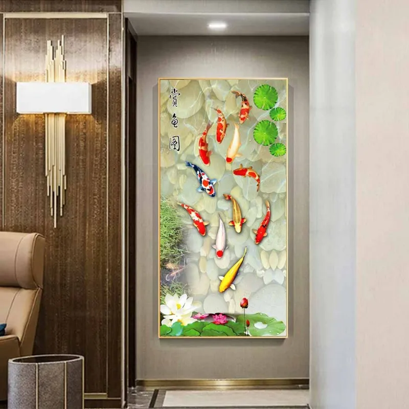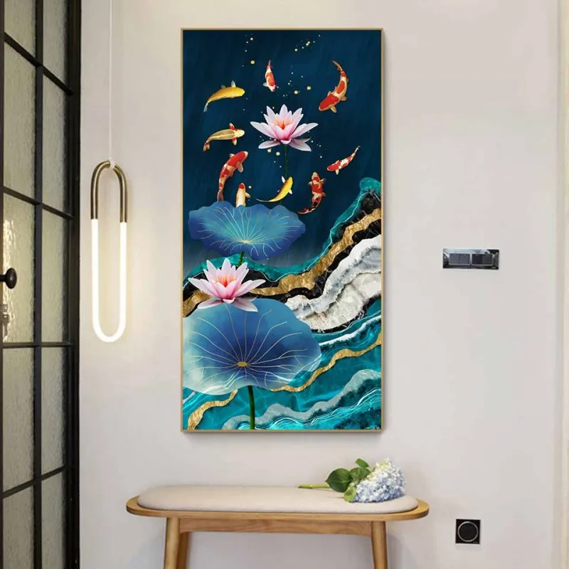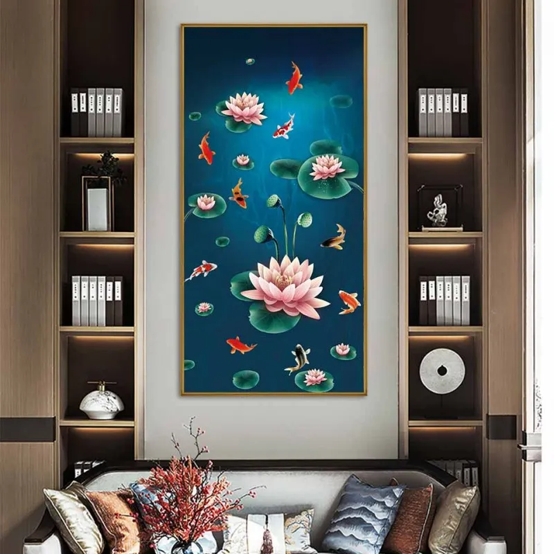 Tranh canvas 6 tấm phong thủy cửu ngư 9 con cá chép và hoa sen