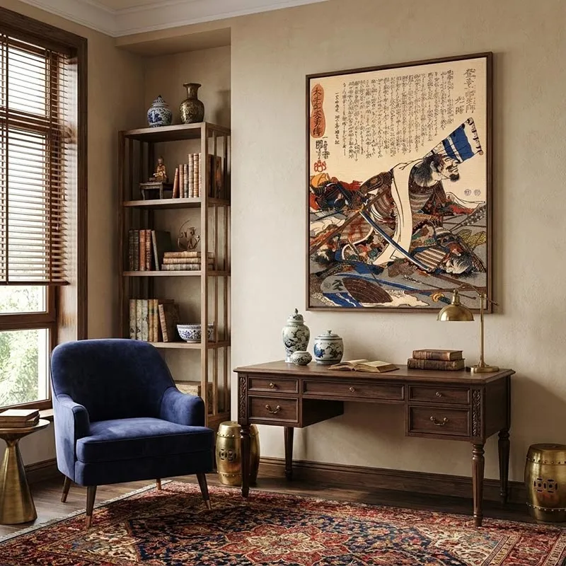 Lý do: Hình ảnh Samurai tượng trưng cho lòng trung thành, sự kiên định, kỷ luật và khả năng vượt qua nghịch cảnh. Treo bức tranh này trong phòng làm việc, đặc biệt là phía sau bàn giám đốc hoặc khu vực thảo luận, sẽ tạo nên khí thế uy nghiêm, truyền cảm hứng về sự quyết tâm và bản lĩnh lãnh đạo.