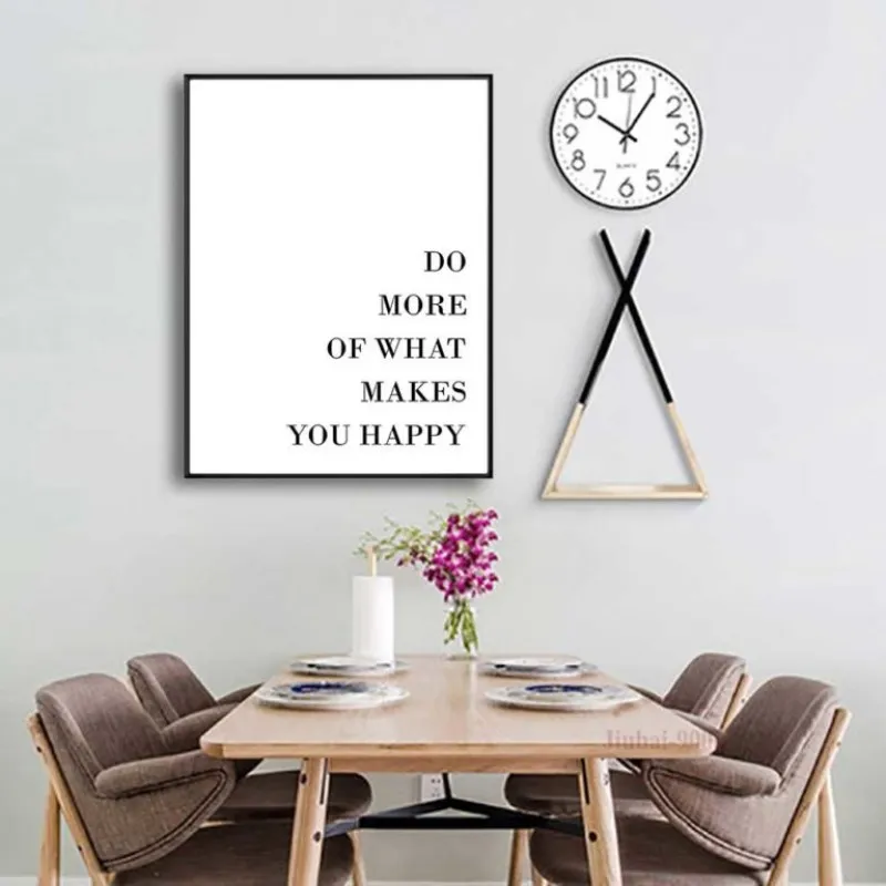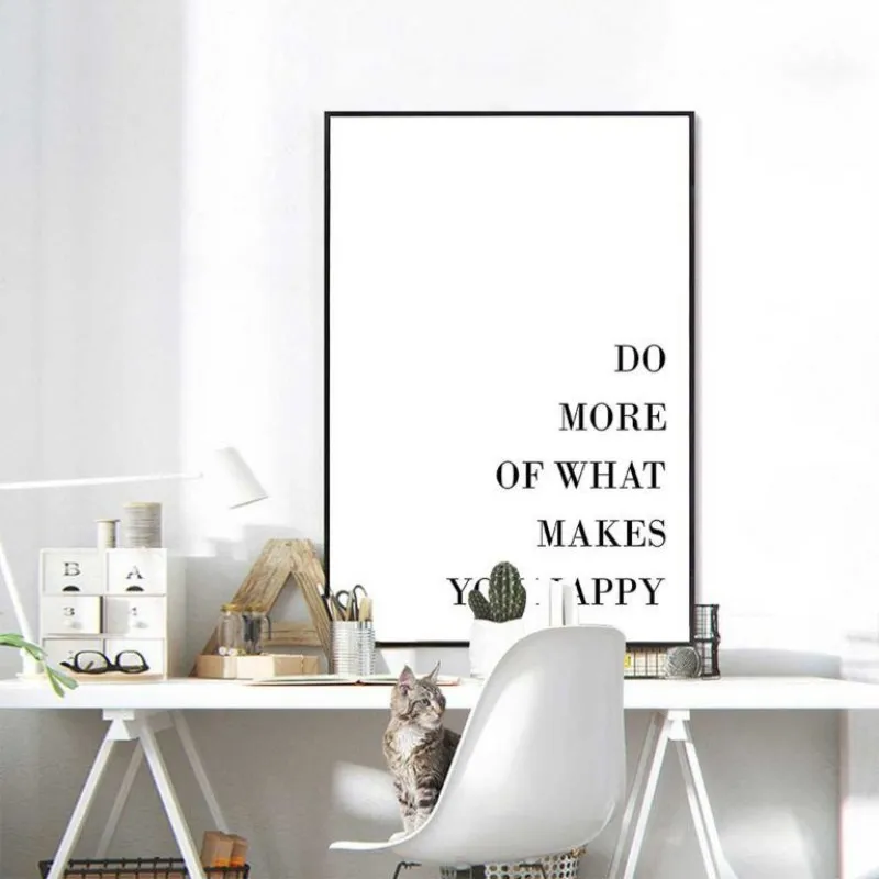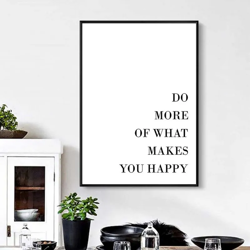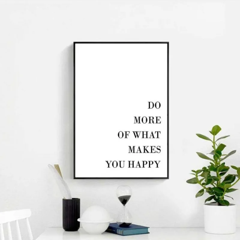 Tranh canvas Scandinavian chữ Do more of what makes you happy màu sắc đơn giản sự kết hợp giữa trắng và đen.