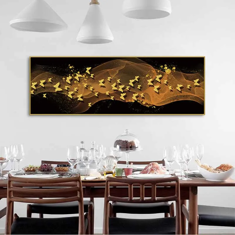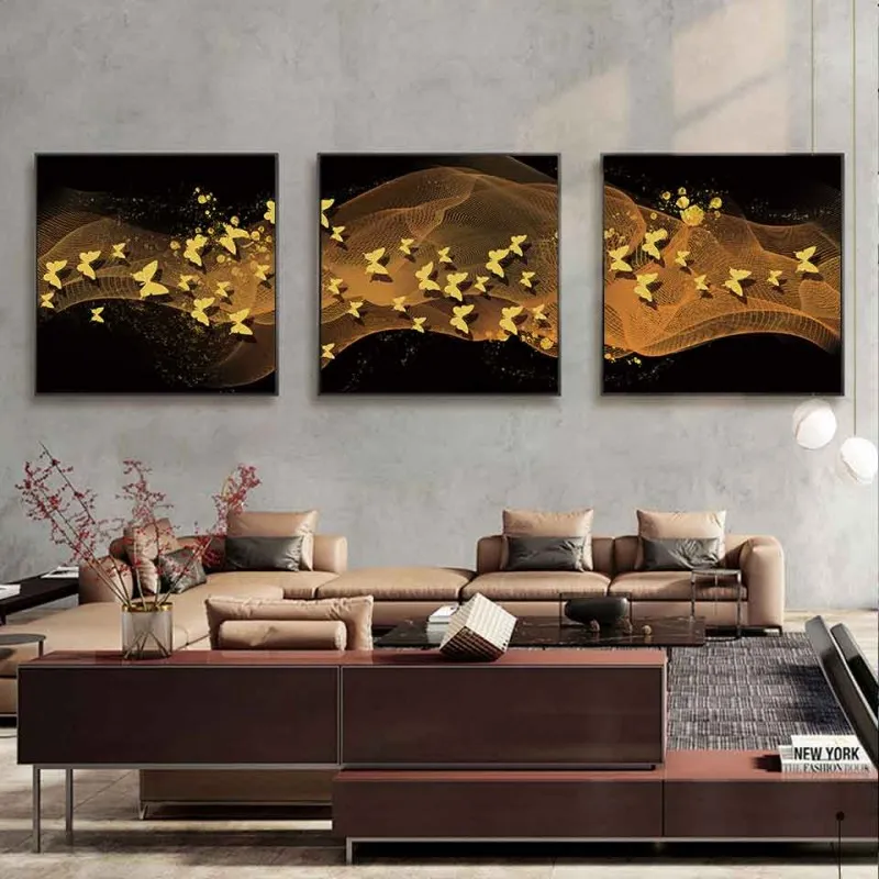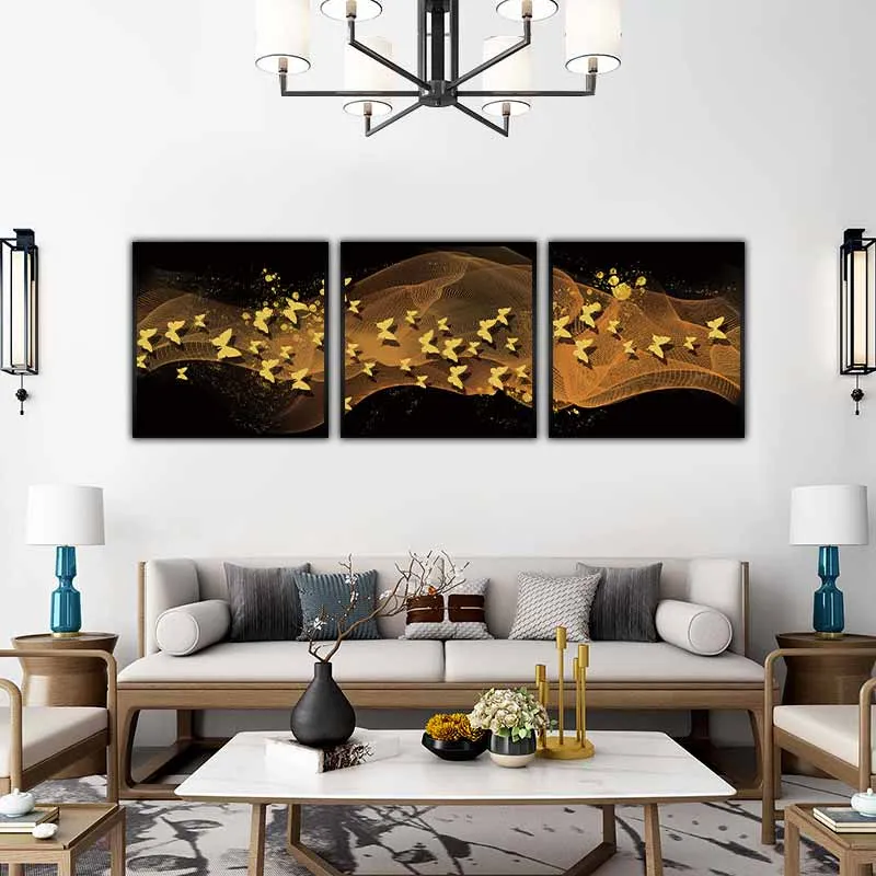 Tranh canvas đàn bướm vàng trên nền trừu tượng