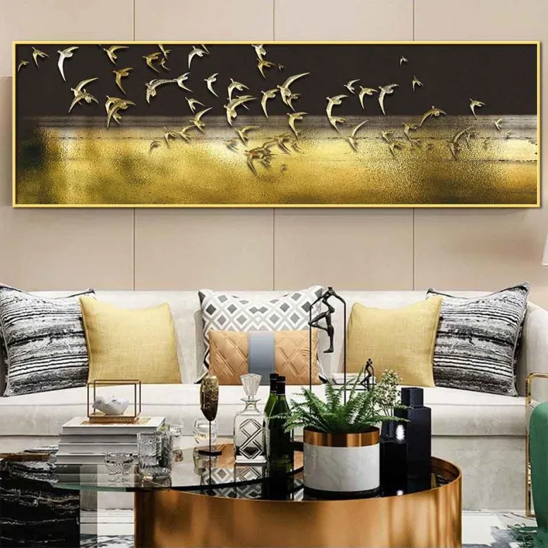 Tranh canvas đàn chim vàng trừu tượng khổ dài