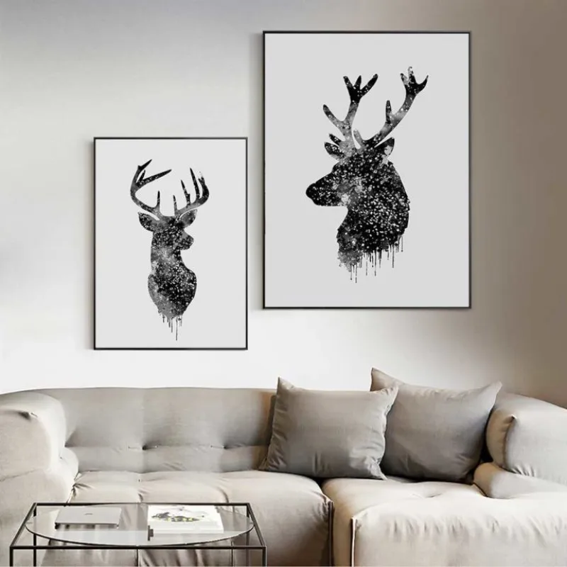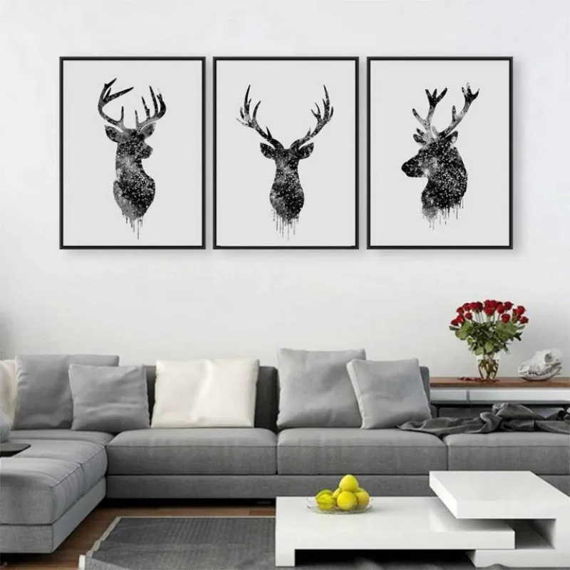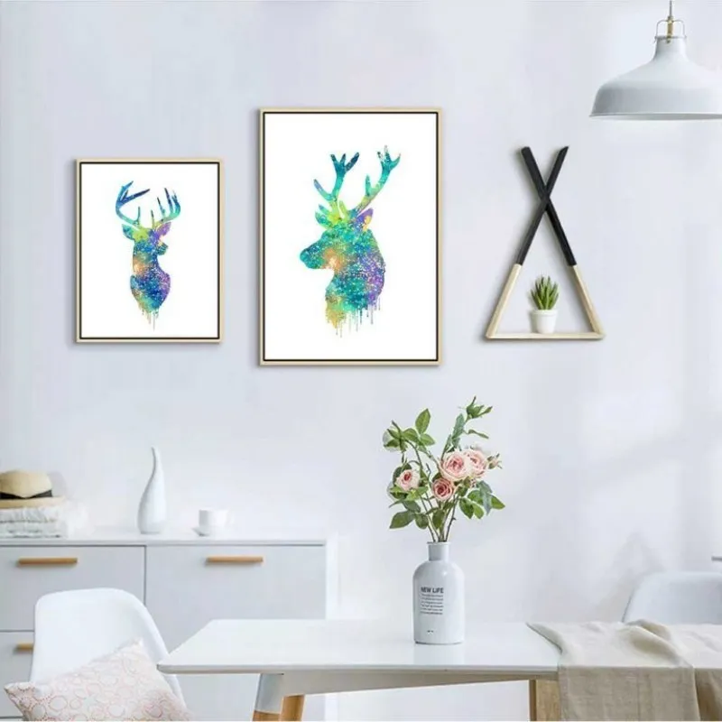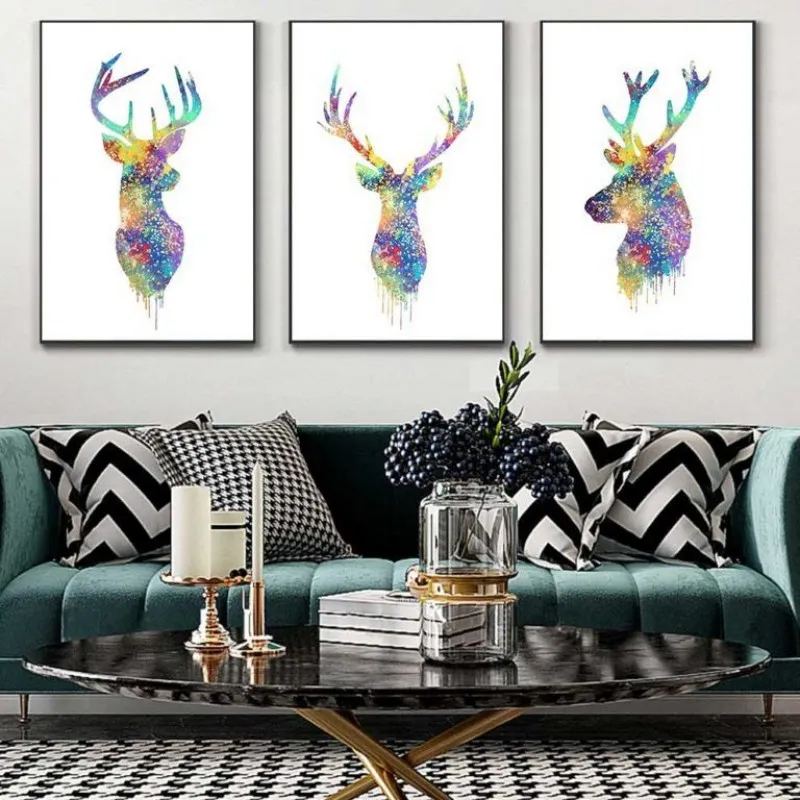 Tranh in canvas hình đầu hươu, nai trừu tượng, tranh nai là thể loại tranh phong thủy, trong âm hán nai nghĩa là lộc đồng nghĩa là bổng lộc, là sự sung túc.