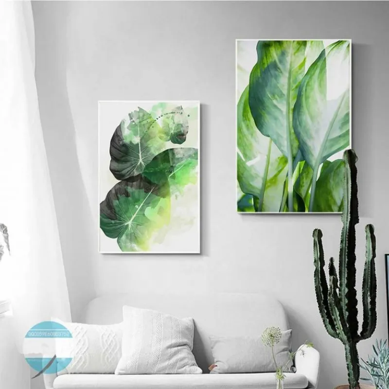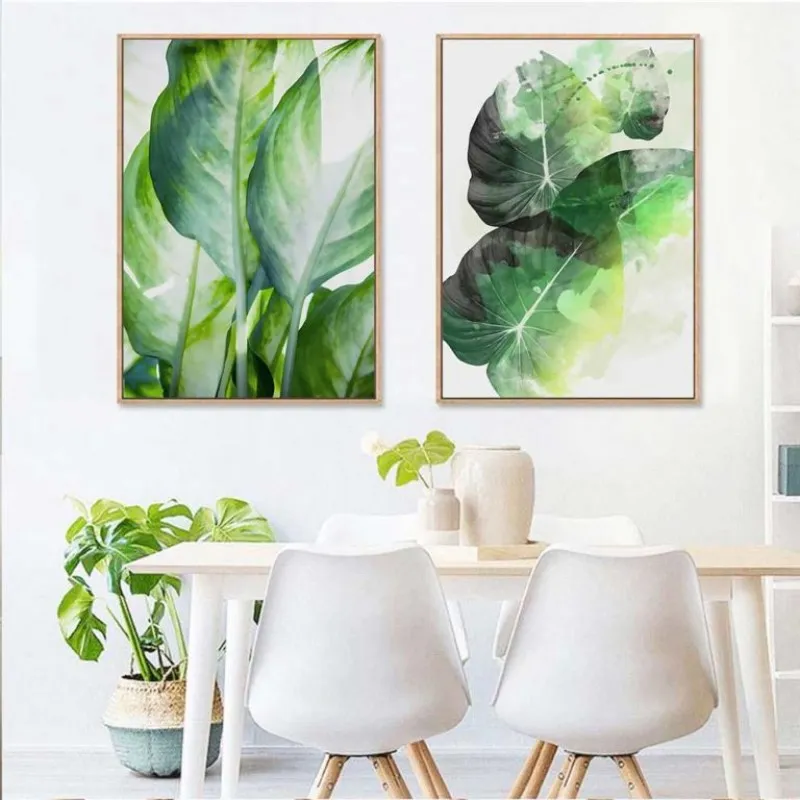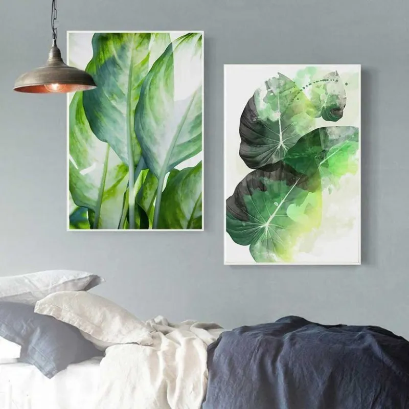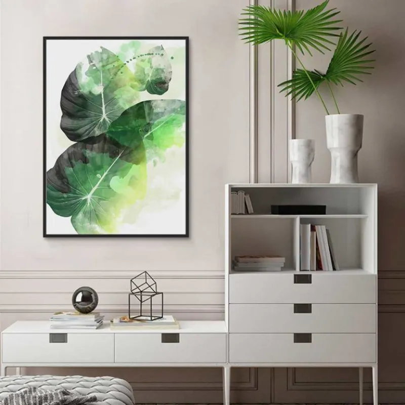 Tranh in canvas Bắc âu Scandinavian lá môn theo phong cách màu nước.
