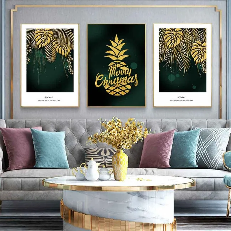 Tranh canvas lá cây nhiệt đới và quả dứa