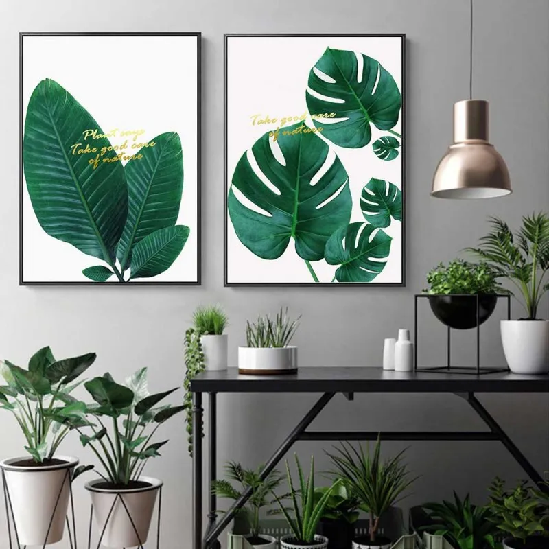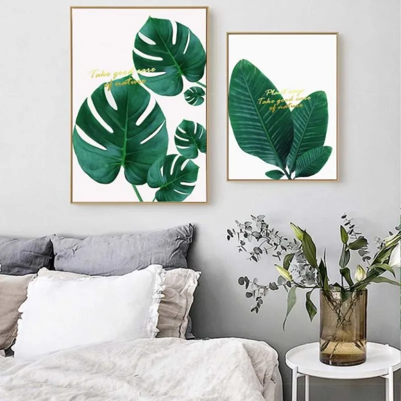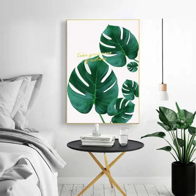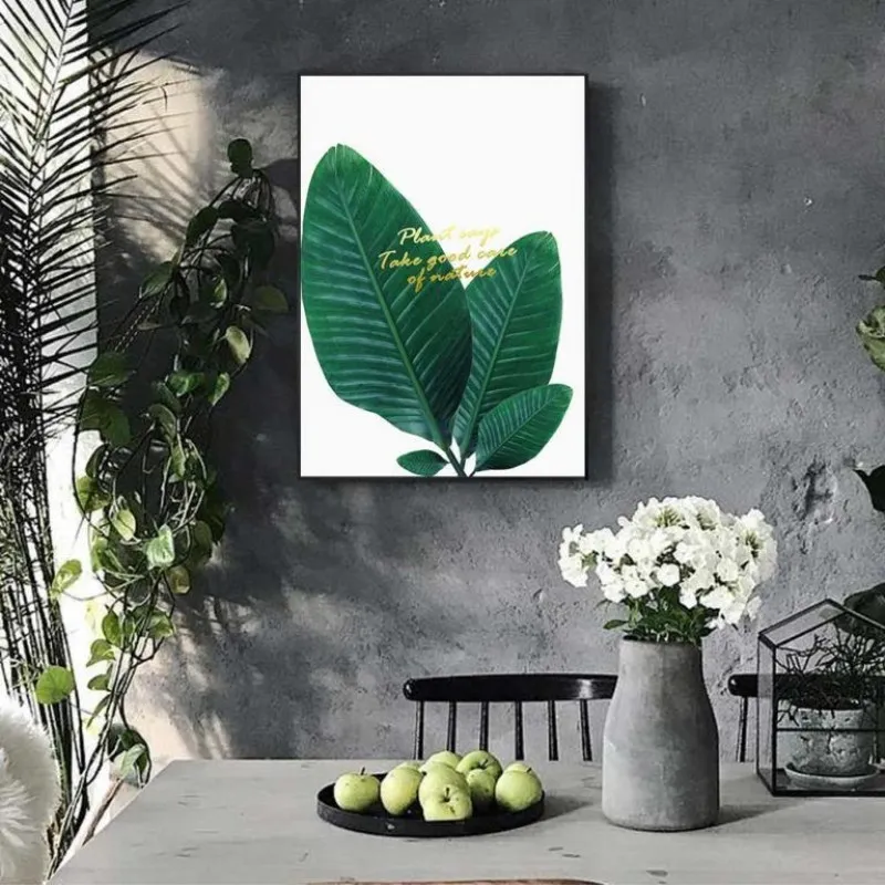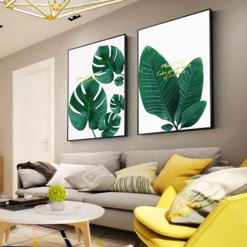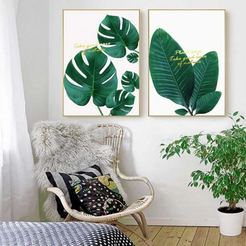 Tranh canvas lá cây Phú quý và lá trầu bà