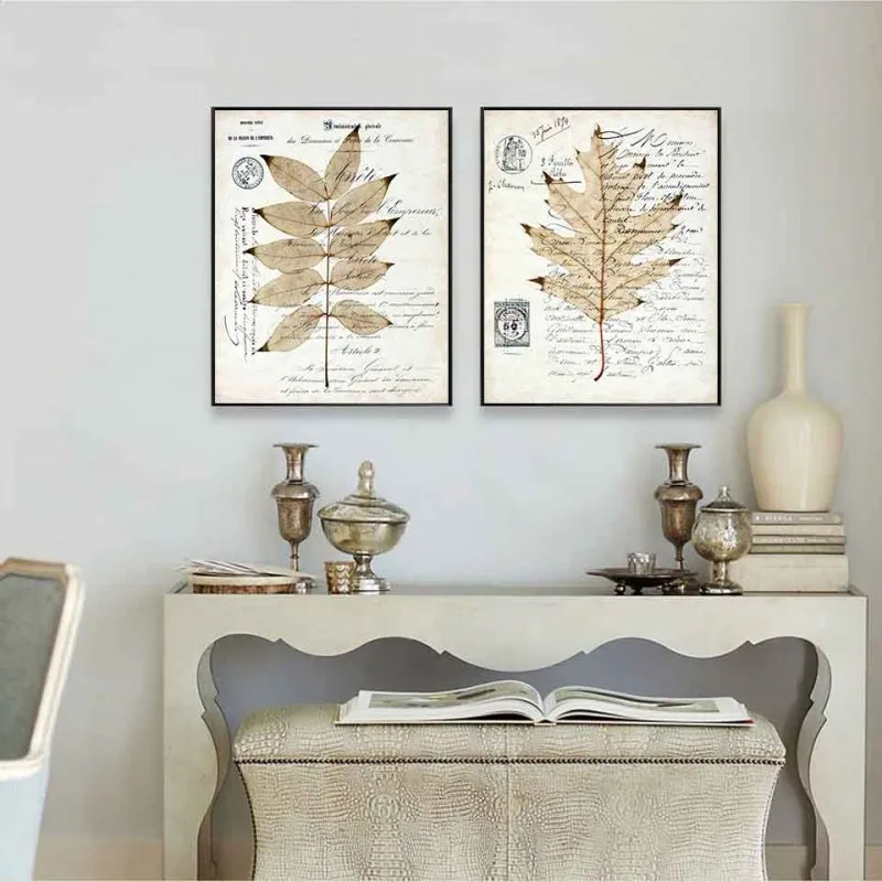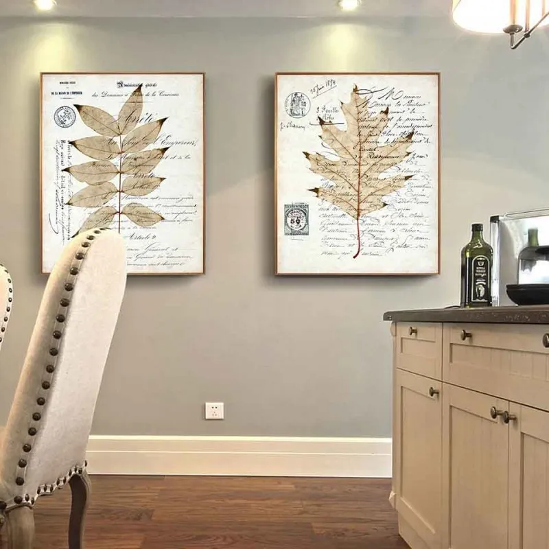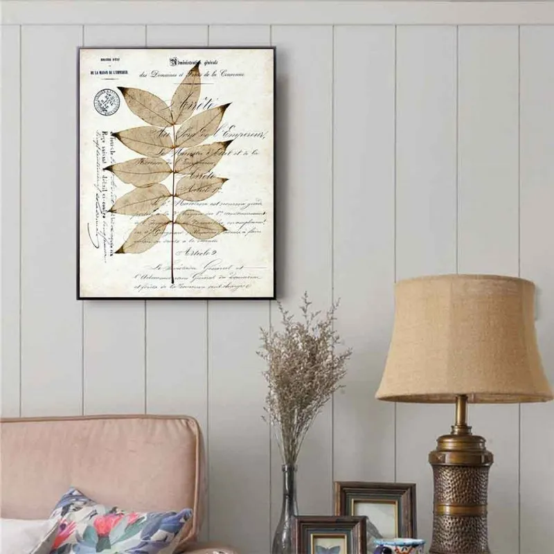 Tranh in canvas lá cây theo phong cách vintage. Đây là bản in từ một postcard cũ, tranh phù hợp treo trong không gian nội thất cổ điển.
