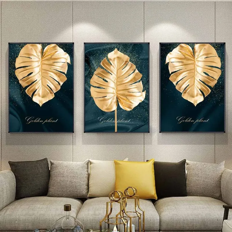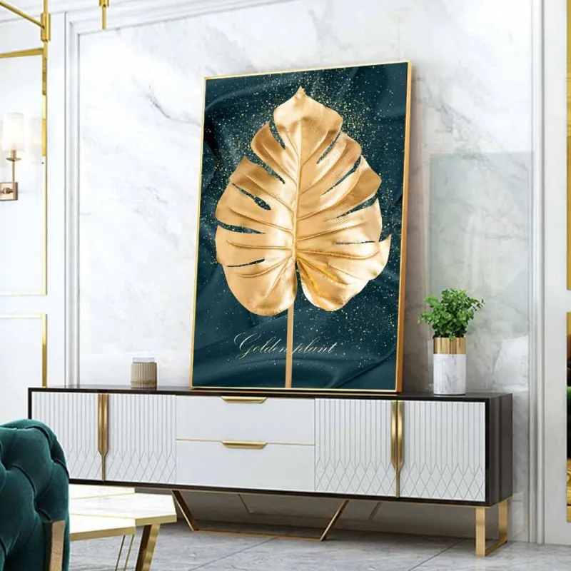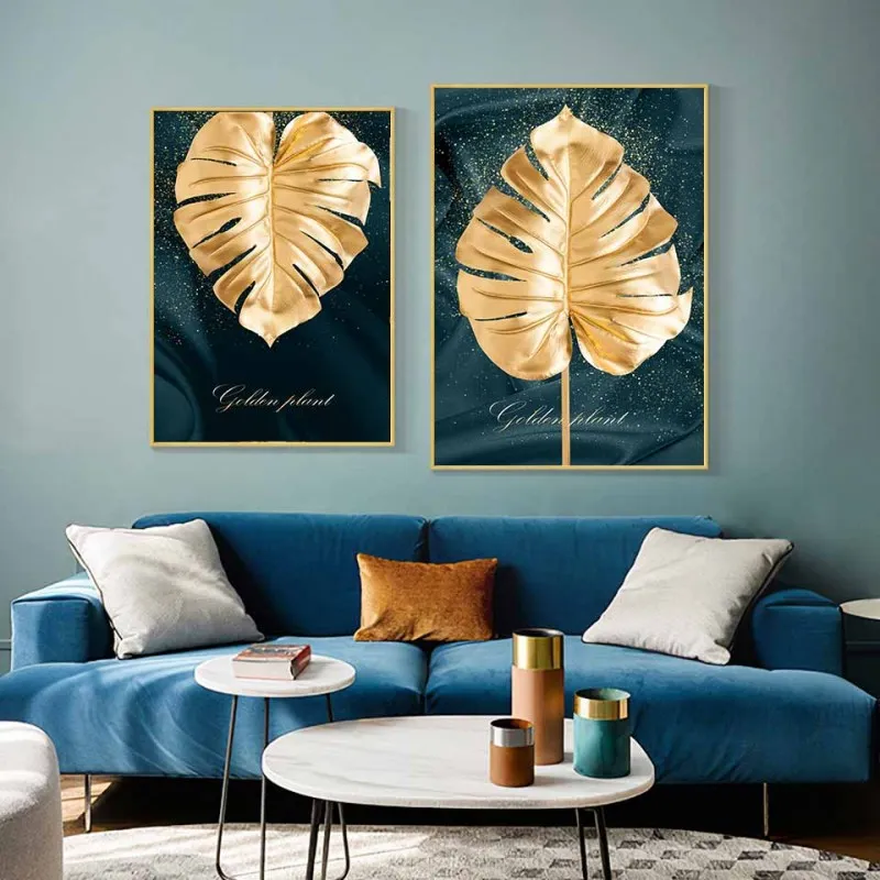 Tranh canvas lá cây vàng nhiệt đới trừu tượng