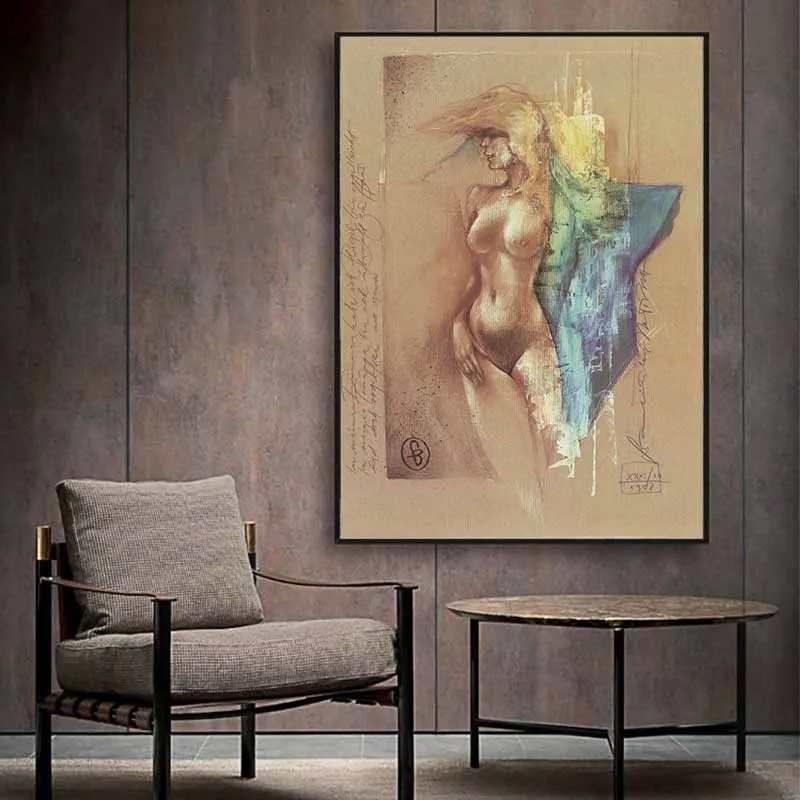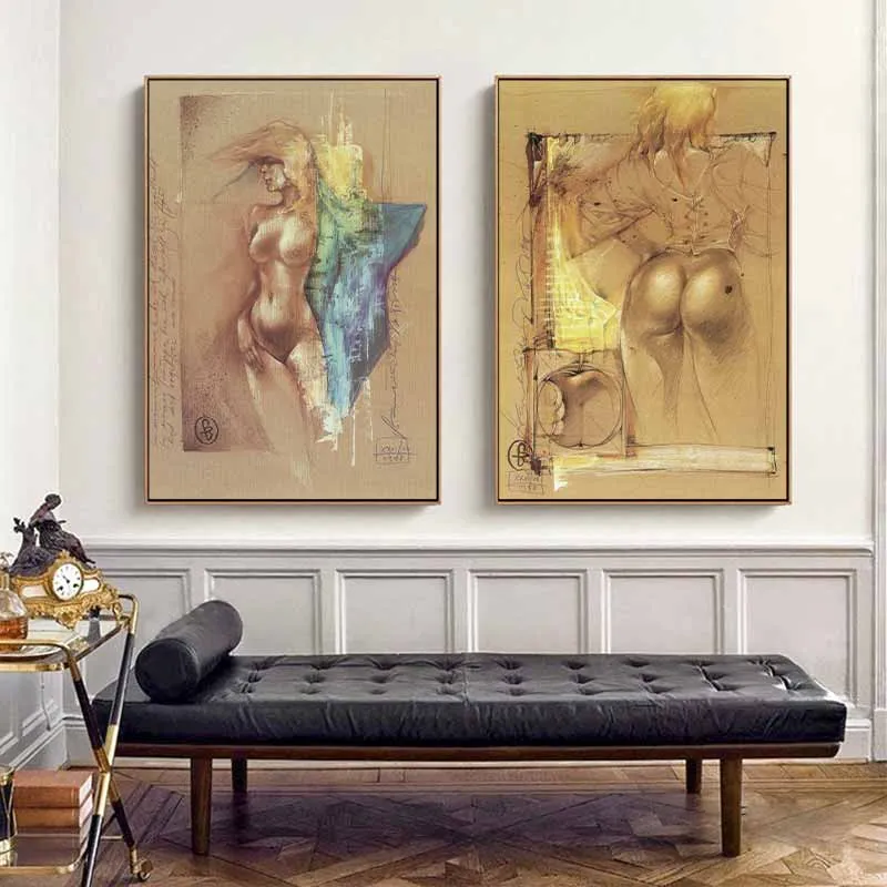 Tranh canvas phác thảo cô gái khỏa thân trừu tượng