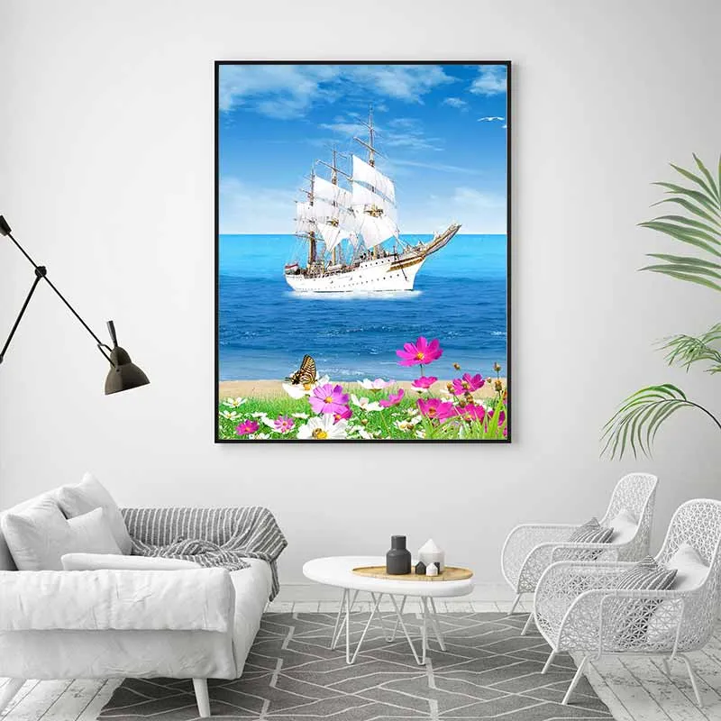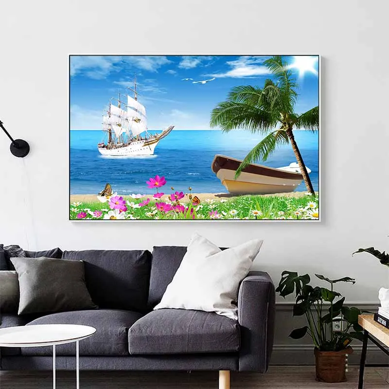 Tranh canvas phong cảnh biển và thuyền buồm trắng