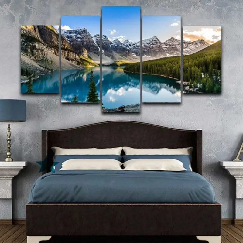 Trang in canvas phong cảnh hồ Moraine và dãy núi Rocky lúc hoàng hôn ở Canada.