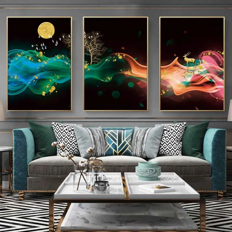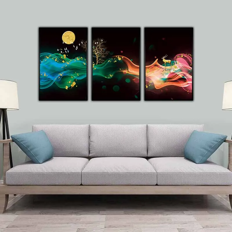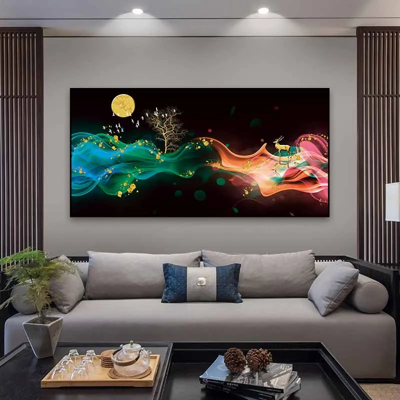 Tranh canvas phong cảnh trừu tượng ban đêm làn khói và đàn nai