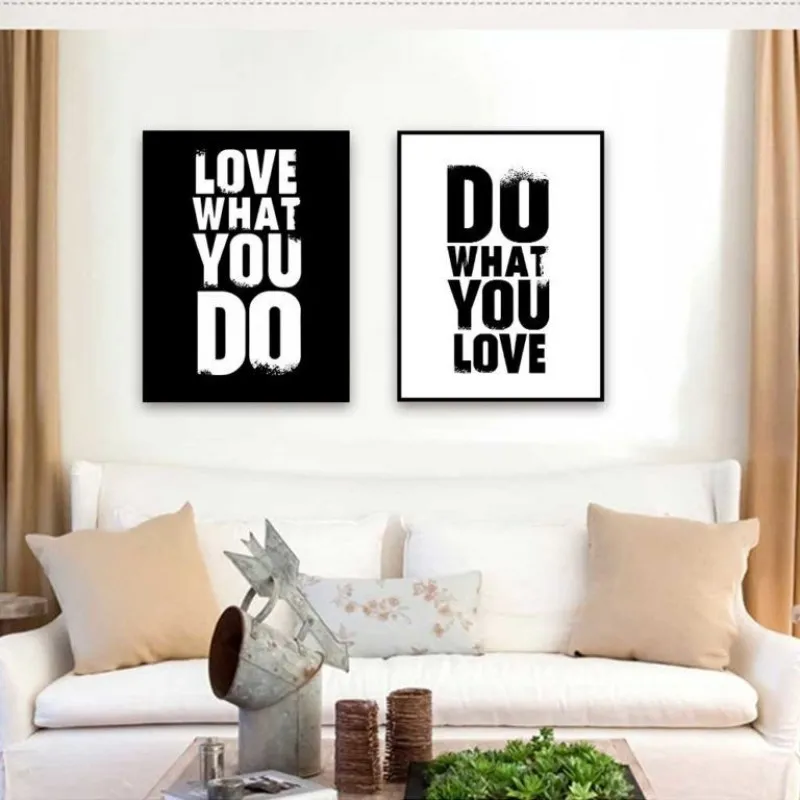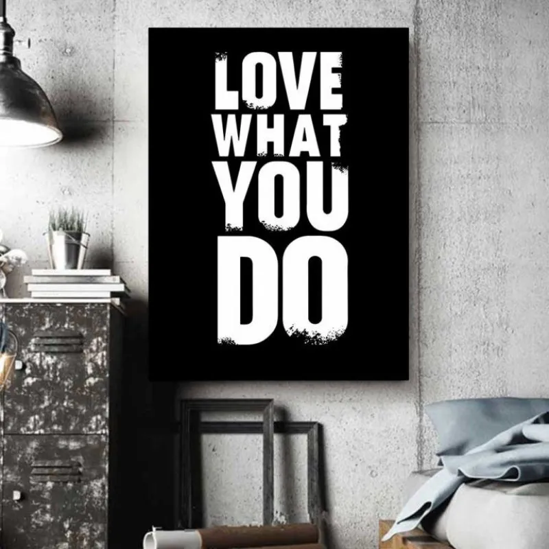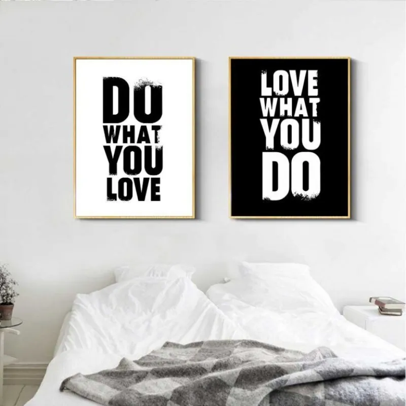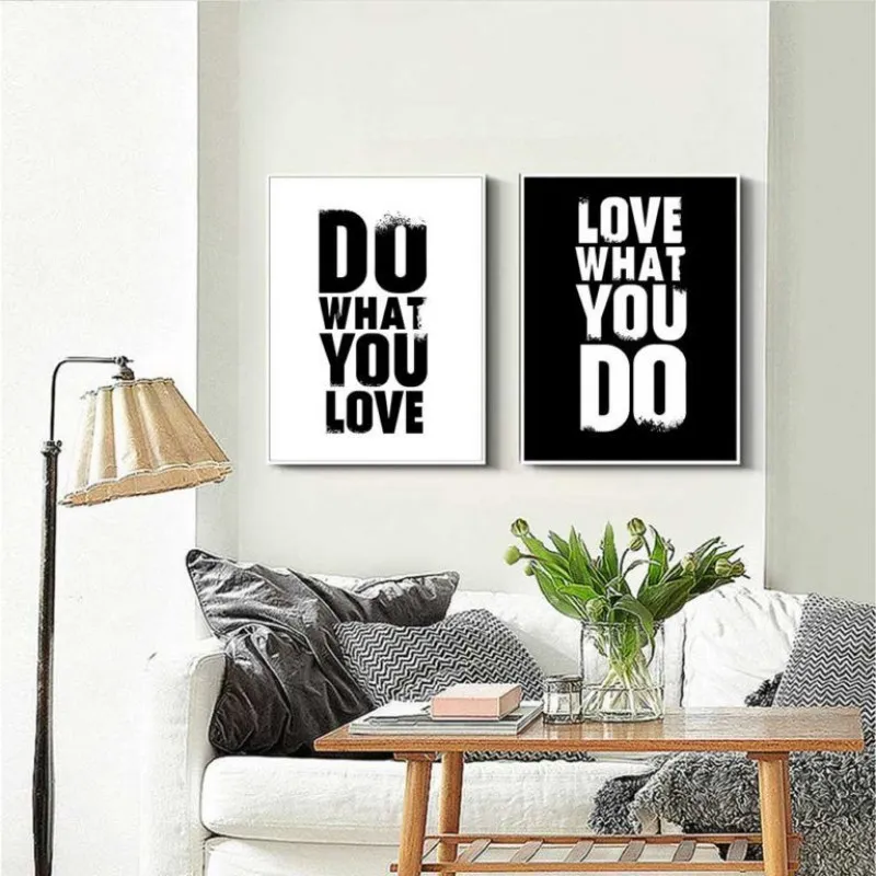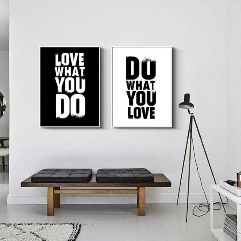 Tranh in canvas Bắc Âu Scandinavian chữ Do what you love, Love what you do màu sắc đơn giản trắng và đen.