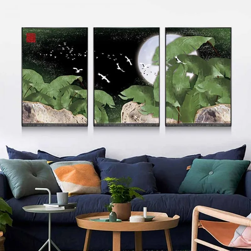 Tranh canvas trừu tượng lá chuối và đàn cò