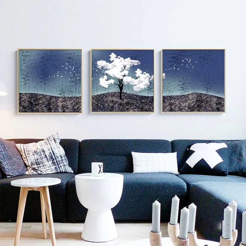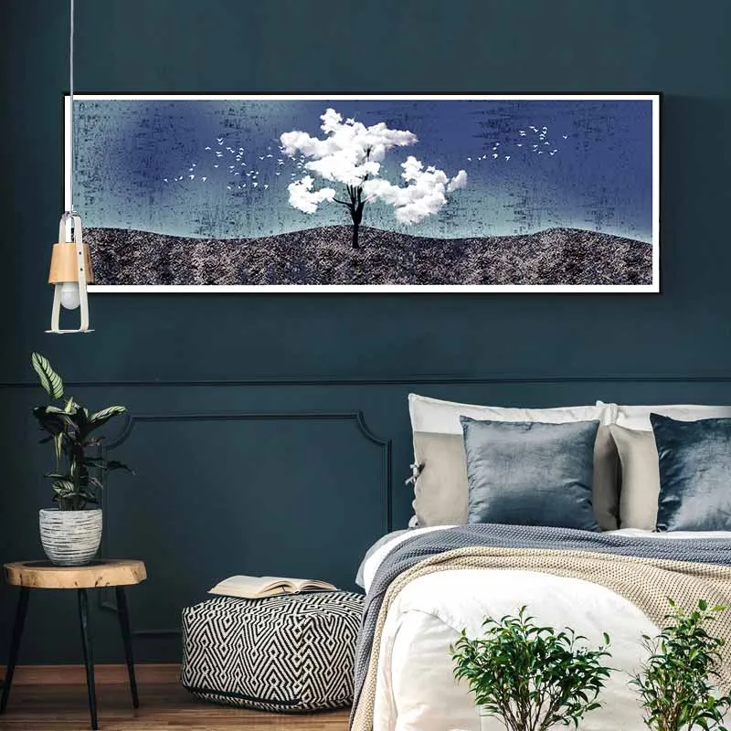 Tranh cây khô trừu tượng với những tán lá là đám mây