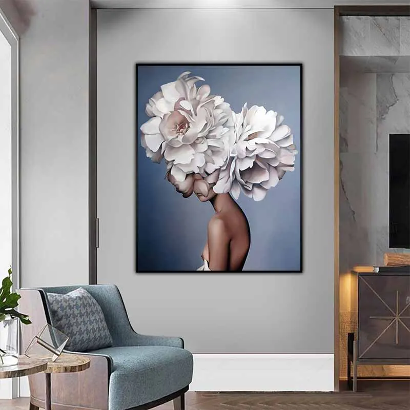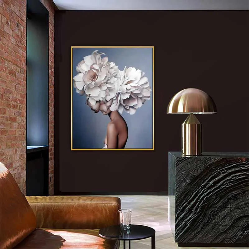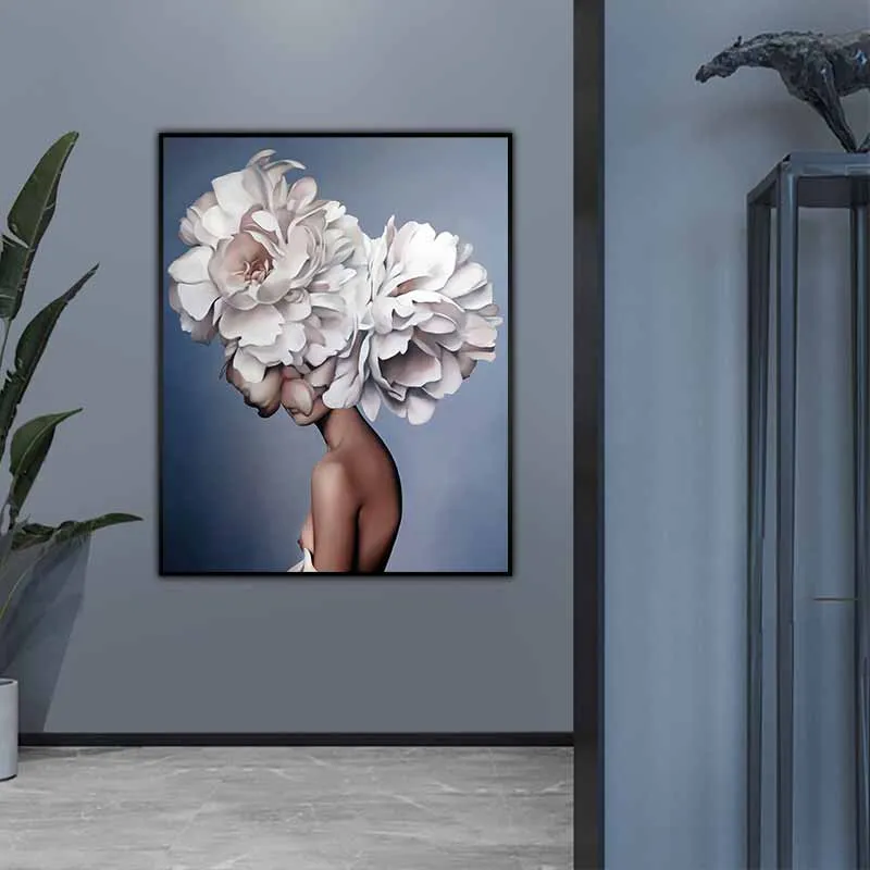 Tranh chân dung cô gái khỏa thân và những bông hoa mẫu đơn