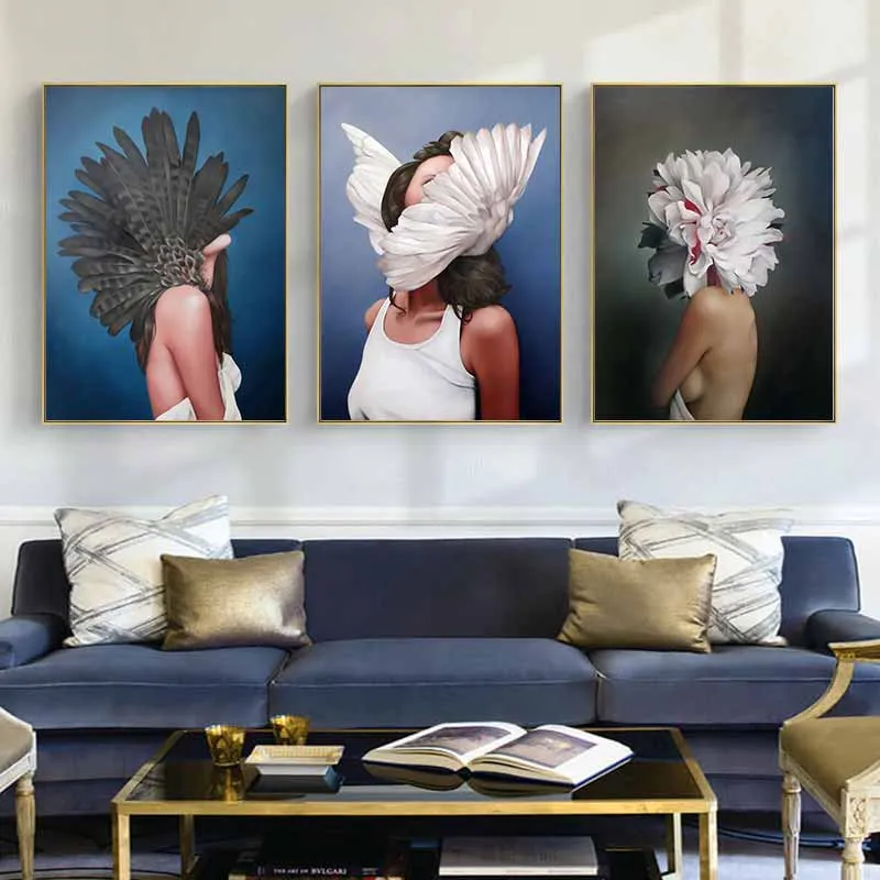 Tranh chân dung cô gái khỏa thân và những những chiếng lông chim