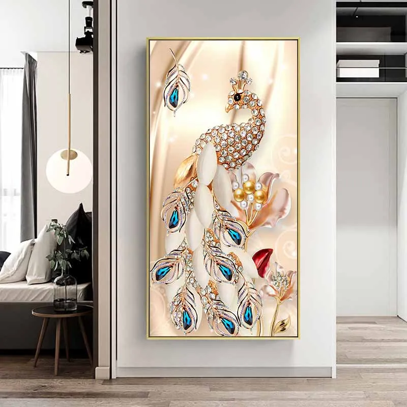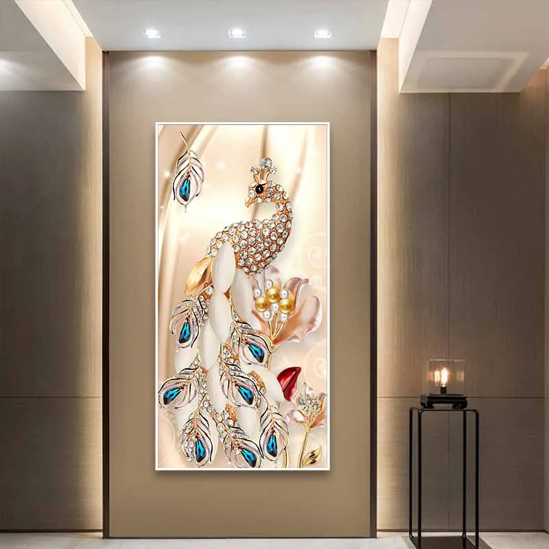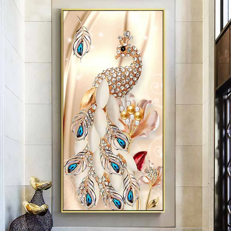 Tranh chim công được làm từ những viên đá quý