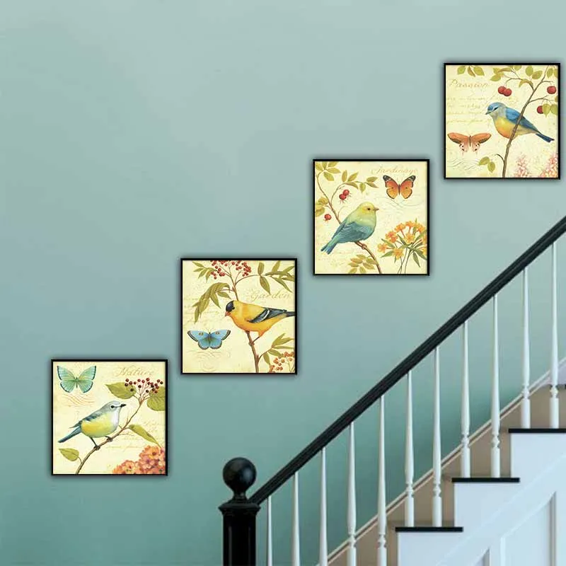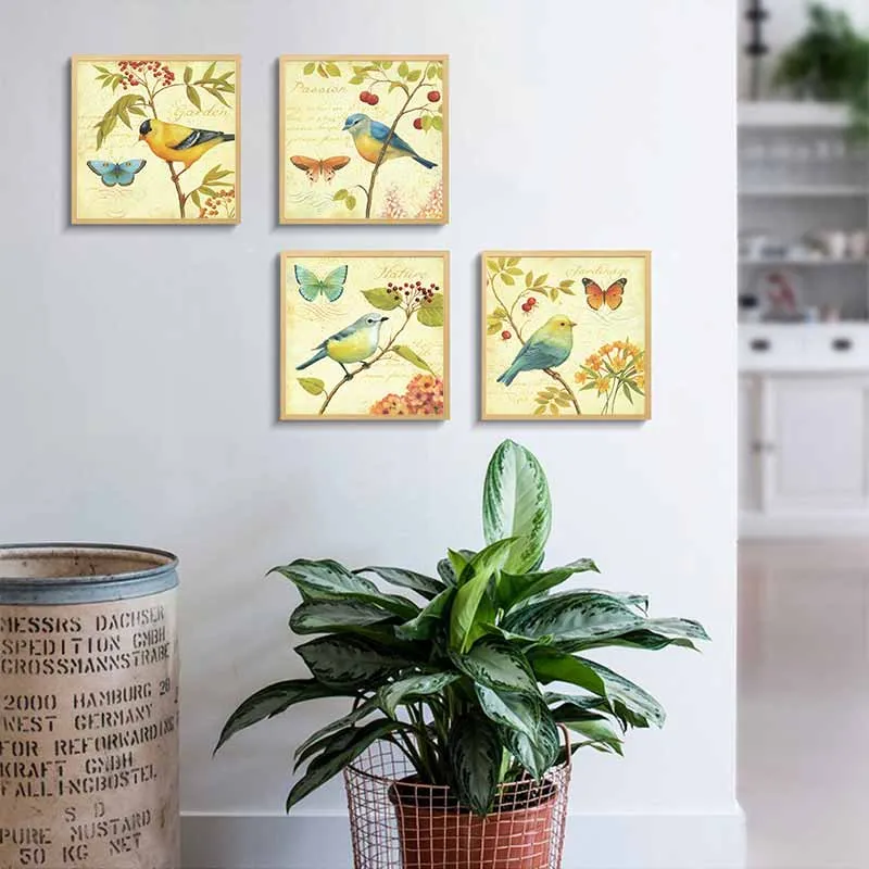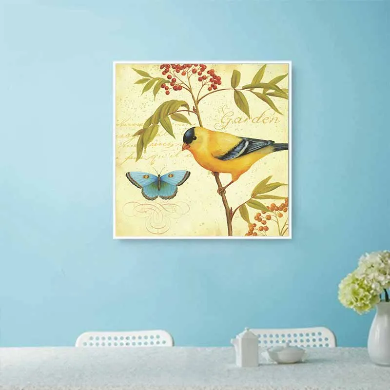 Tranh chim đứng trên cành cây có những chùm trái màu đỏ