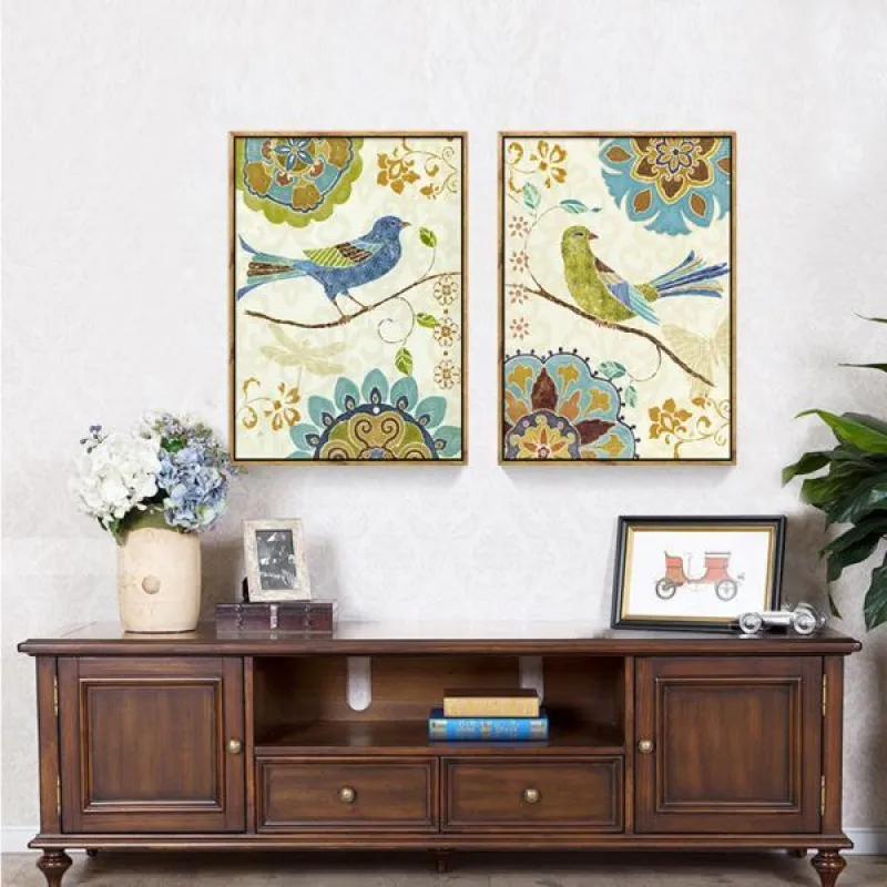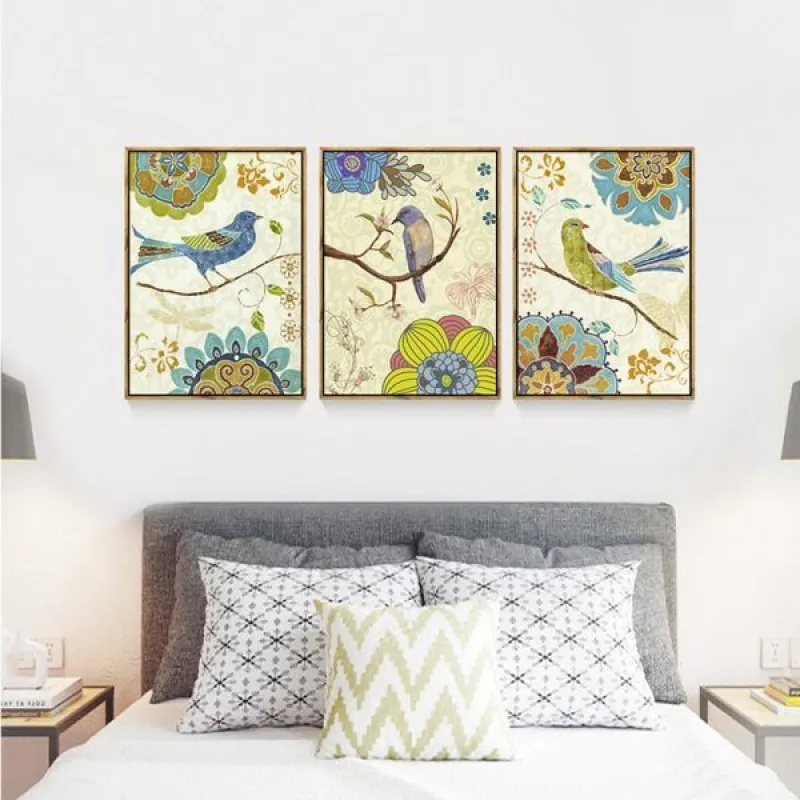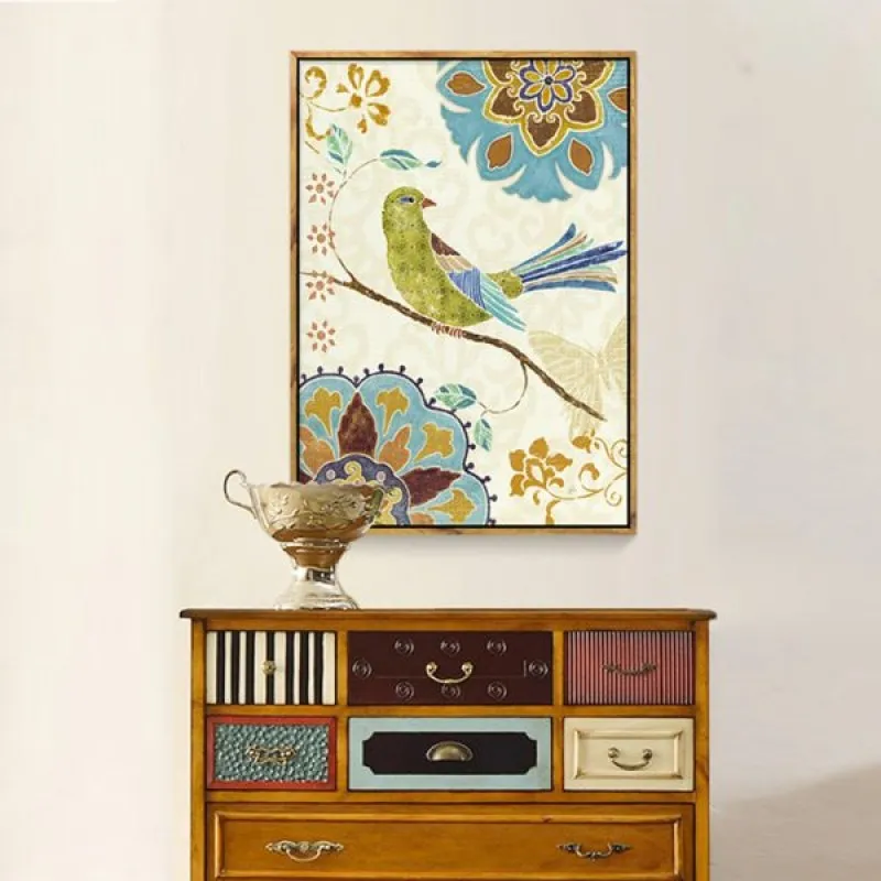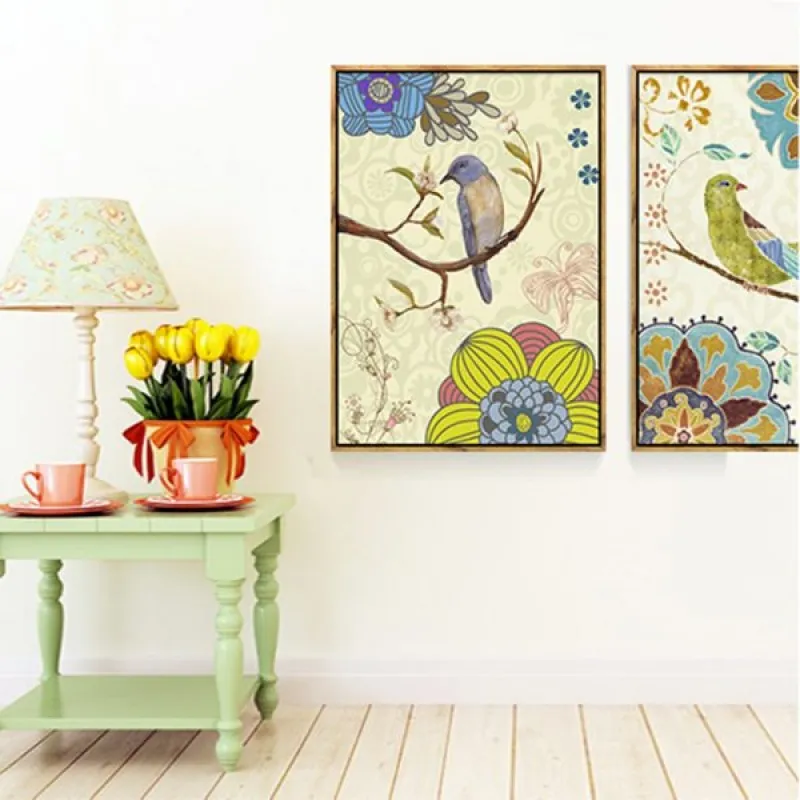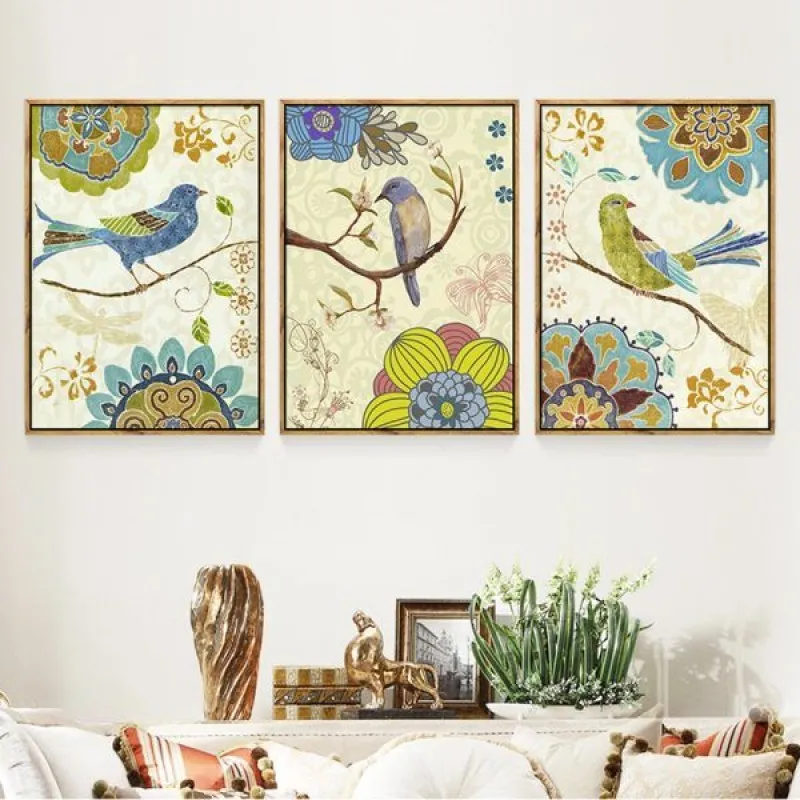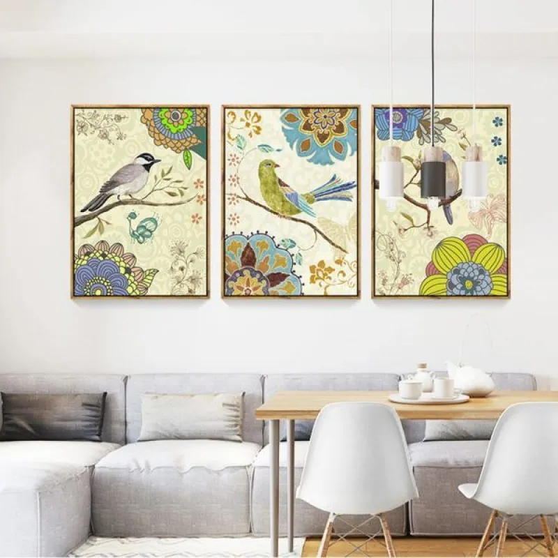 Tranh in canvas chim và hoa cách điệu theo phong cách Vintage, thích hợp treo ở phòng khách, phòng làm việc, phòng ngủ, quán cà phê, chân cầu thang, bàn học, bàn làm việc…